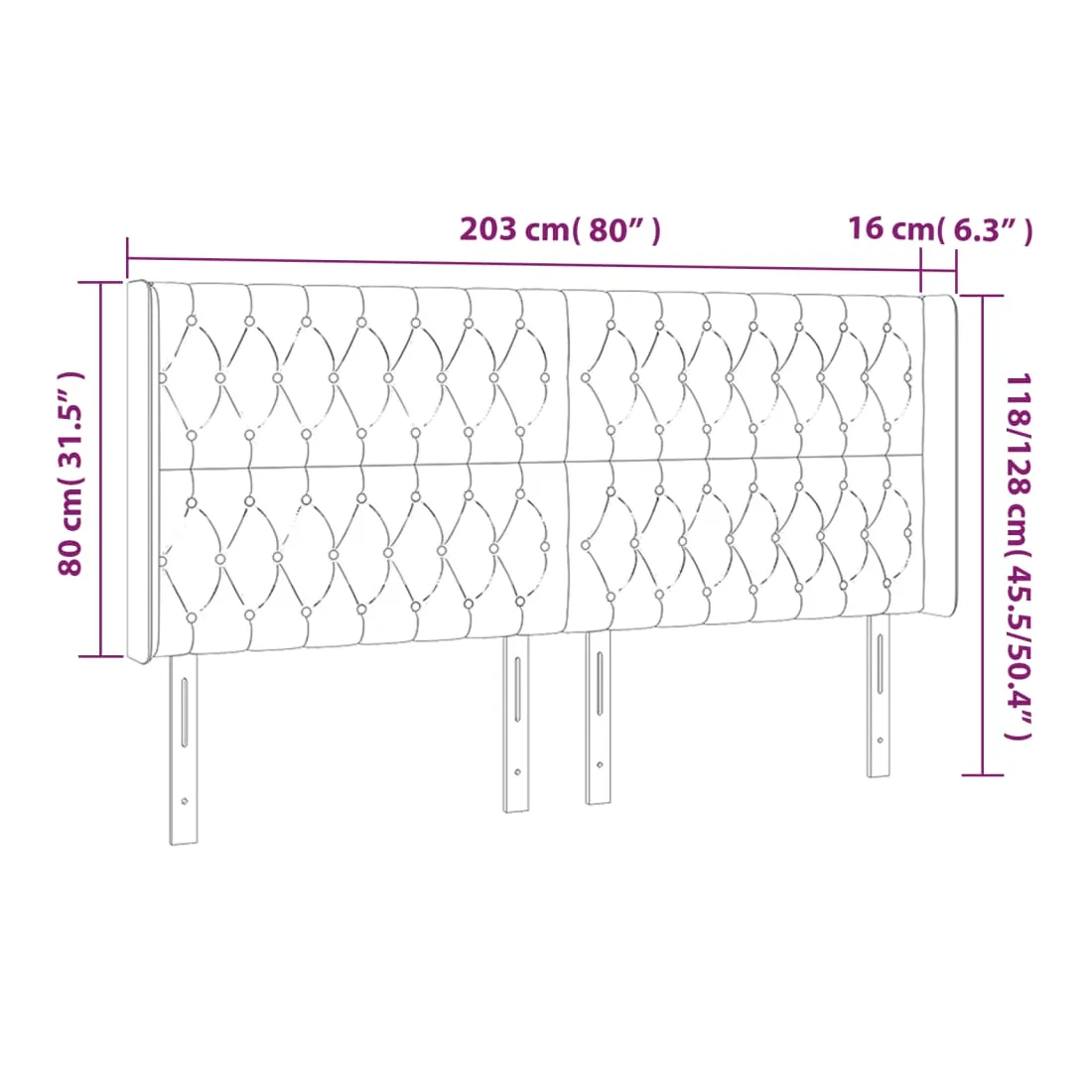 203 x 16 x 118/128 cm