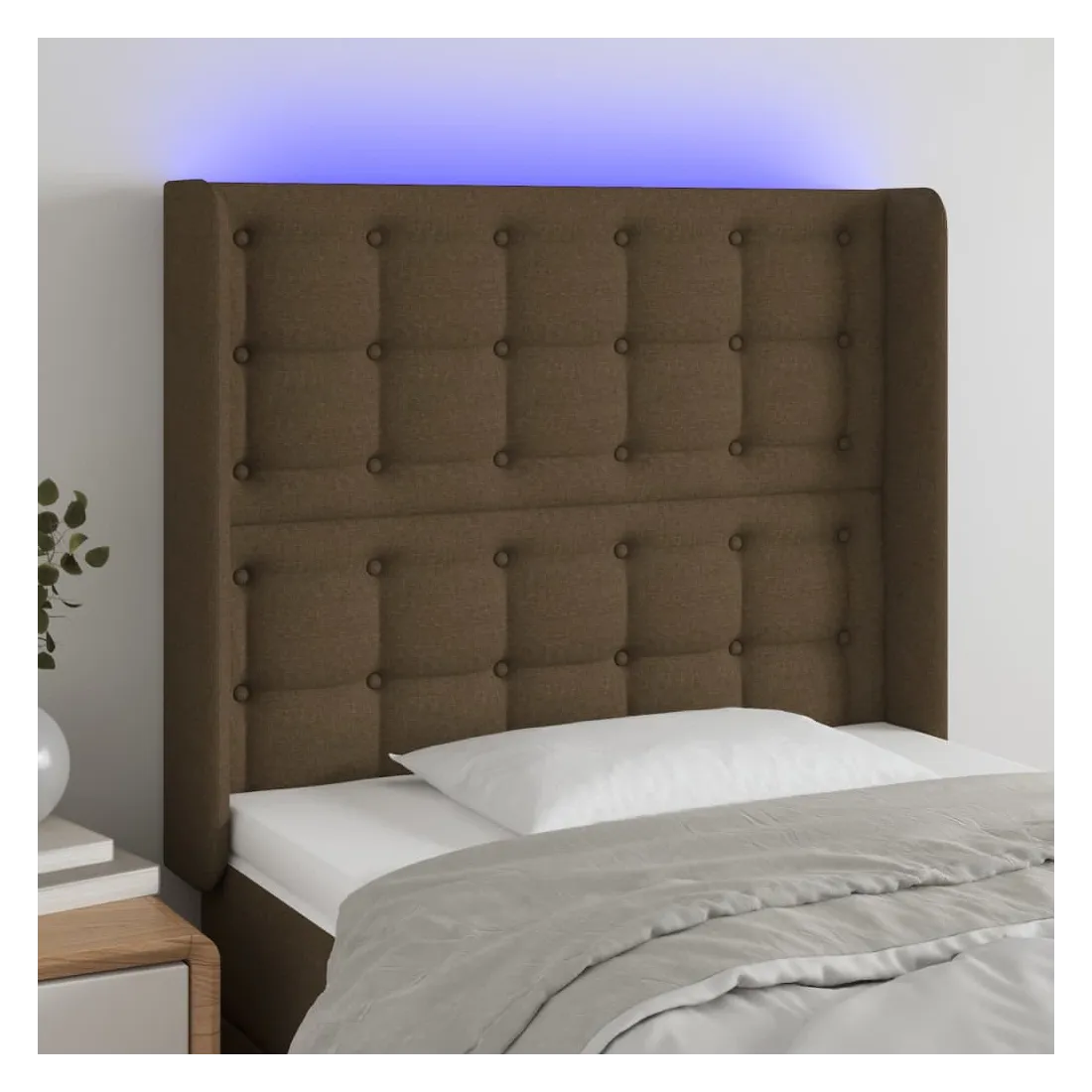 Tête de lit à LED Marron foncé 93x16x118/128 cm Tissu
