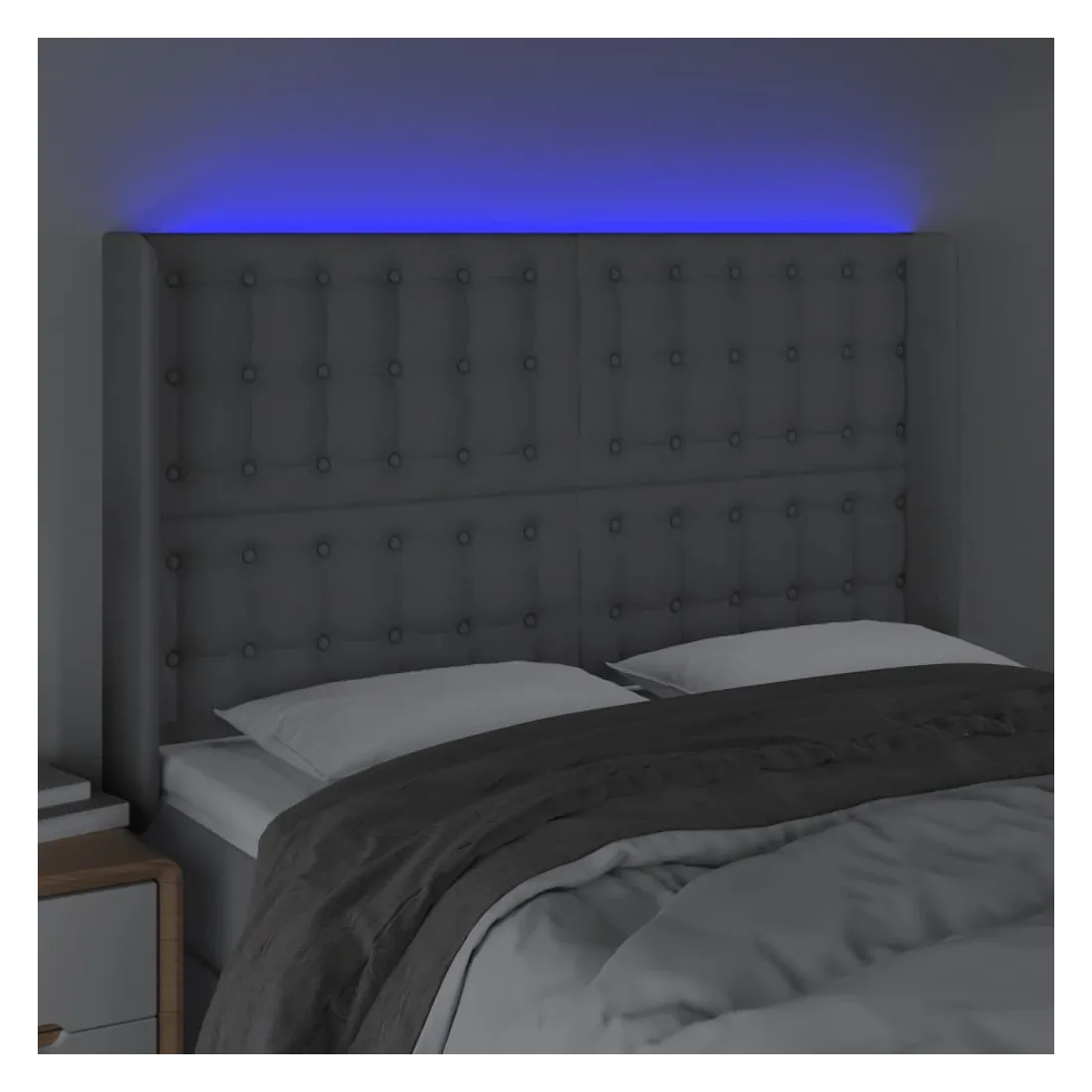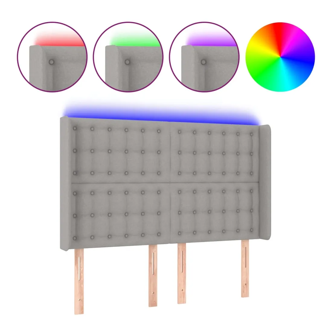 Tête de lit à LED Gris clair 147x16x118/128 cm Tissu