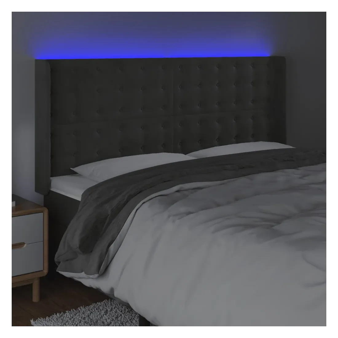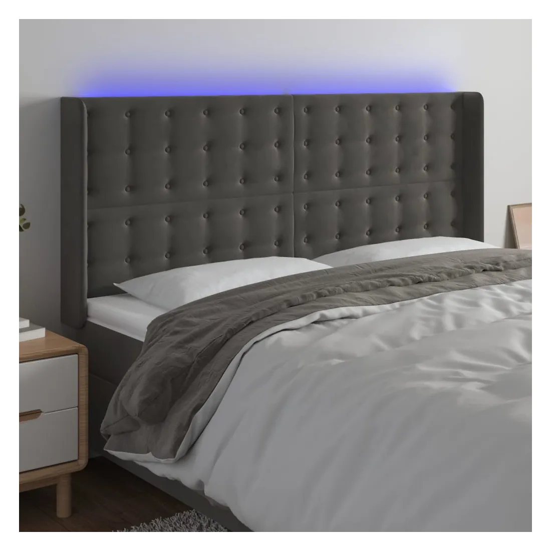 Tête de lit à LED Gris foncé 203x16x118/128 cm Velours