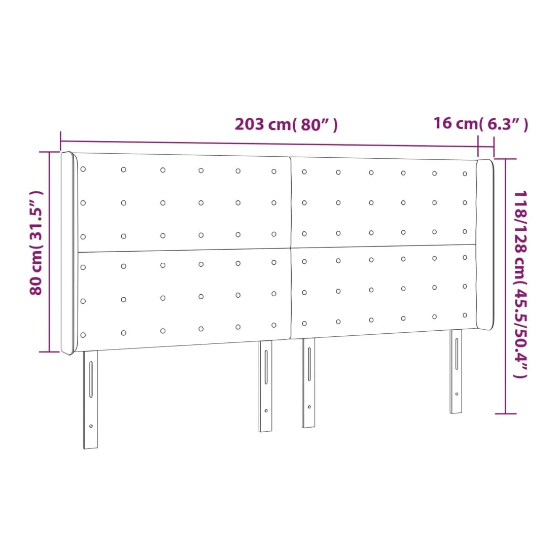 203 x 16 x 118/128 cm