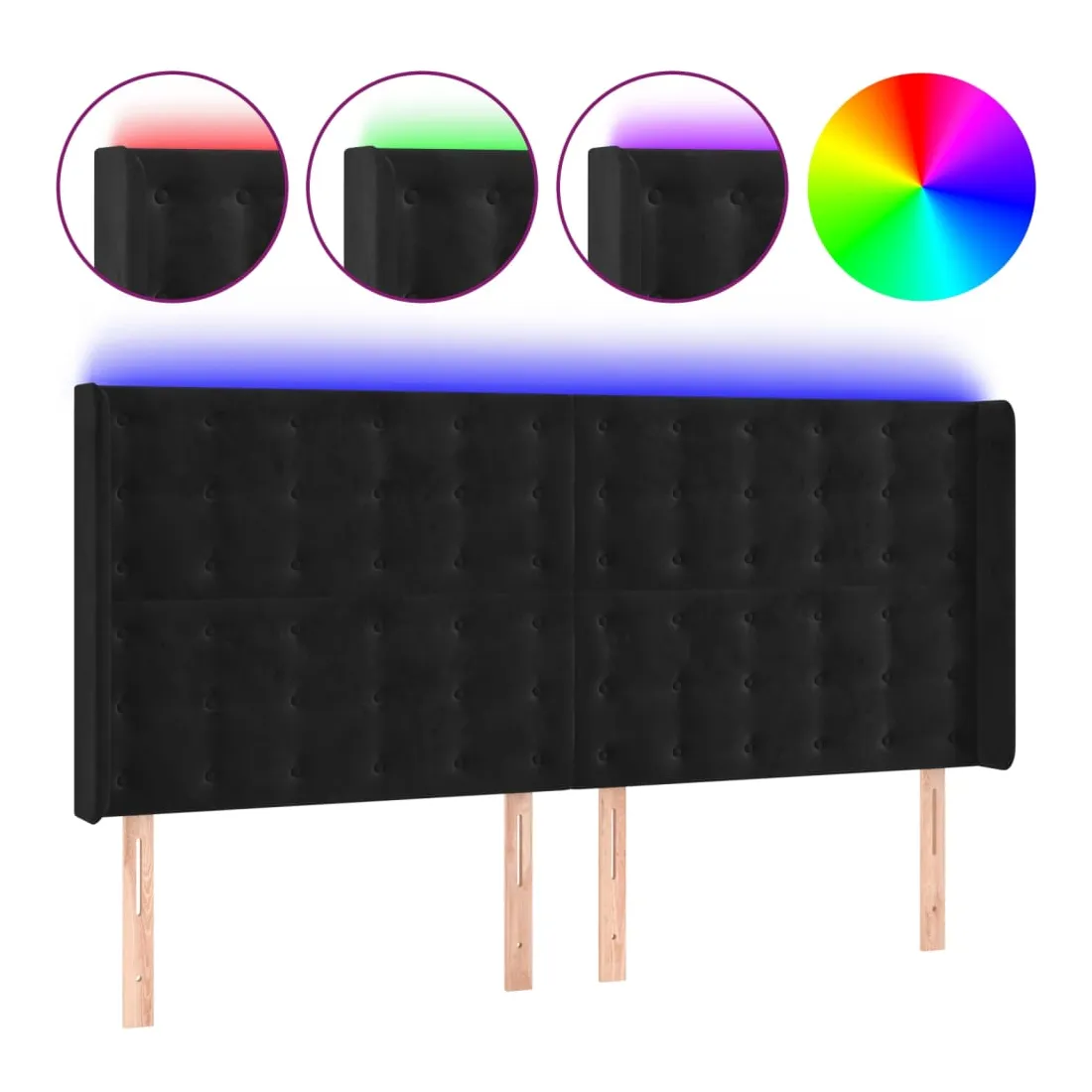 Cette tête de lit à LED classique, au design élégant, donne à votre cadre de lit une touche de modernité étonnante et convient parfaitement à toute chambre à coucher. Velours doux : le velours est un tissu doux et luxueux qui se reconnaît à son tas dense de fibres uniformément coupées qui ont une touche lisse. Le tissu en velours présente un toucher doux distinctif, ce qui le rend confortable au toucher.LED colorée : apportez de l'éclairage dans l'obscurité avec des lumières LED colorées !Hauteur réglable : la tête de lit est réglable en hauteur selon vos préférences.Excellent soutien : la tête de lit vous offre un excellent soutien du dos lorsque vous êtes assis dans votre lit pour lire ou regarder la télévision.Bande à LED découpable : cette bande à LED flexible peut être ajustée en longueur. Le symbole des ciseaux indique où la bande peut être coupée en toute sécurité sans l'endommager. Remarque :Seule la partie avec un symbole de ciseaux peut être coupée et seule la partie avec l'USB continuera à fonctionner comme avant.Chaque produit est livré avec un manuel de montage dans la boîte pour un montage facile.Ce produit est doté d'un connecteur USB, mais la source d'alimentation certifiée de USB 5V n'est pas incluse.