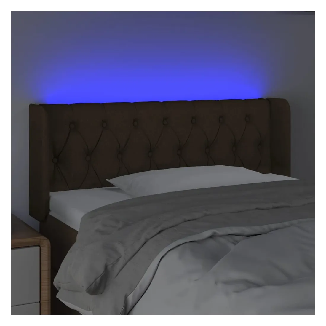 Cette tête de lit à LED classique, au design élégant, donne à votre cadre de lit une touche de modernité étonnante et convient parfaitement à toute chambre à coucher. Tissu durable : le tissu présente un aspect simple et épuré, et il est respirant et durable.LED colorée : apportez de l'éclairage dans l'obscurité avec des lumières LED colorées !Hauteur réglable : la tête de lit est réglable en hauteur selon vos préférences.Excellent soutien : la tête de lit vous offre un excellent soutien du dos lorsque vous êtes assis dans votre lit pour lire ou regarder la télévision.Bande à LED découpable : cette bande à LED flexible peut être ajustée en longueur. Le symbole des ciseaux indique où la bande peut être coupée en toute sécurité sans l'endommager. Remarque :Seule la partie avec un symbole de ciseaux peut être coupée et seule la partie avec l'USB continuera à fonctionner comme avant.Chaque produit est livré avec un manuel de montage dans la boîte pour un montage facile.Ce produit est doté d'un connecteur USB, mais la source d'alimentation certifiée de USB 5V n'est pas incluse.