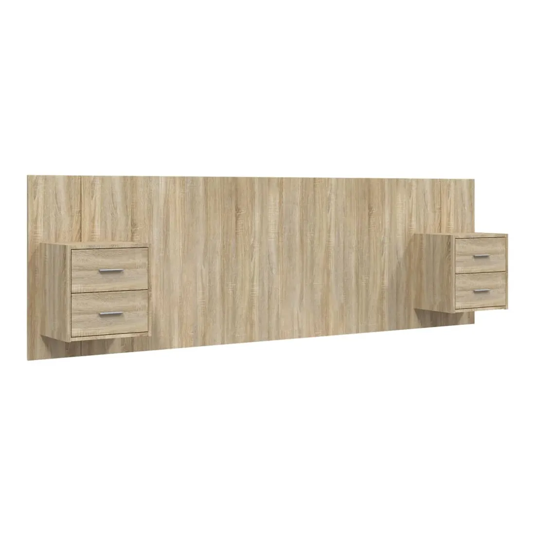 La tête de lit robuste avec armoires, au design classique, donne à votre cadre de lit un aspect complet et convient à toute chambre à coucher. Matériau robuste : le bois d'ingénierie est d'une qualité exceptionnelle avec une surface lisse et présente également résistance, stabilité et résistance à l'humidité.Design mural : les tables de chevet flottantes et la tête de lit peuvent être fixées au mur. De cette façon, vous pouvez maximiser votre espace au sol et garder la zone propre.Espace de rangement : l'unité de chevet dispose d'un espace de rangement spacieux qui vous permet de garder vos affaires organisées. ATTENTION :Les vis et les chevilles pour l'intérieur du mur ne sont pas incluses. Recherchez et utilisez des vis et des chevilles adaptées à vos murs. Si vous n'êtes pas sûr, demandez conseil à un professionnel. Lisez et suivez attentivement chaque étape des instructions.