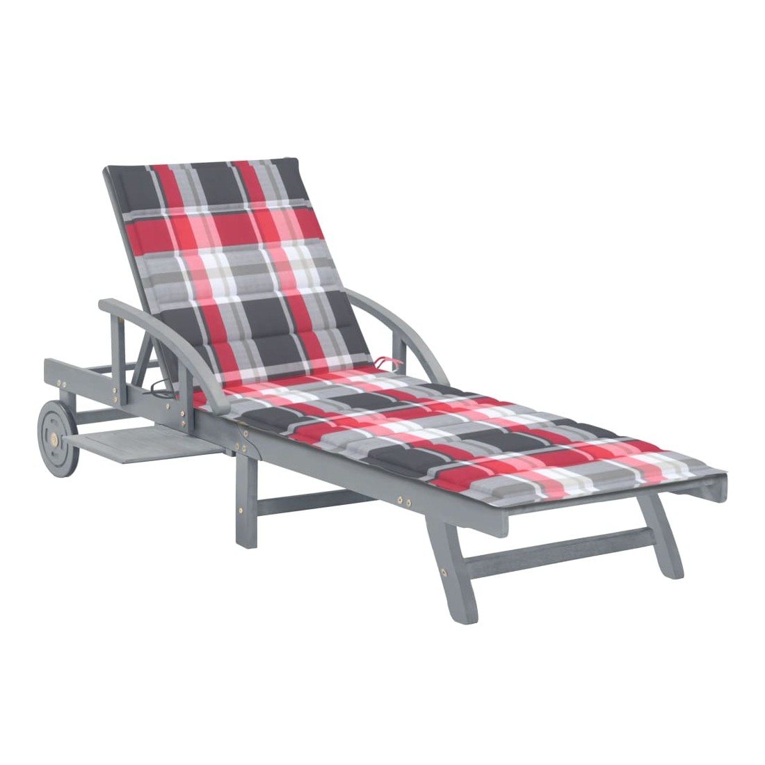 Détendez-vous et reposez-vous dans votre jardin ou patio sur cette confortable chaise longue en bois ! Vous pouvez passer un après-midi de détente dans votre propre espace extérieur. Elle est parfaite pour une piscine, balcon, jardin, etc. Cette chaise longue d'extérieur est fabriquée en bois d’acacia massif avec une finition de couleur grise, ce qui la rend robuste et stable. Le dossier et le repose-pied sont réglables, et vous pouvez verrouiller la chaise longue dans la position souhaitée. Cette chaise longue de jardin peut être facilement déplacée autour de la maison avec 2 roues équipées. Le transat dispose d’une table coulissante pratique, pour placer votre téléphone, lunettes de soleil, boisson et autres petits articles. Le coussin ajoute un confort supplémentaire pendant que vous vous prélassez. Chaque coussin comprend deux jeux de cordes pour que vous puissiez le fixer solidement sur la chaise longue. Remarque : afin de prolonger la durée de vie des meubles d'extérieur, nous vous recommandons de les protéger avec une housse imperméable.