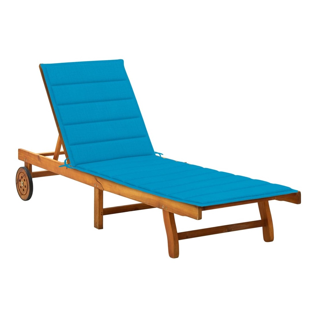 Détendez-vous et reposez-vous dans votre jardin ou patio sur cette confortable chaise longue en bois ! Vous pouvez passer un après-midi de détente dans votre propre espace extérieur. Elle est parfaite pour une piscine, balcon, jardin, etc. Cette chaise longue d'extérieur est fabriquée en bois d’acacia massif, ce qui la rend robuste et stable. Le dossier et le repose-pied sont réglables, et vous pouvez verrouiller la chaise longue dans la position souhaitée. Cette chaise longue de jardin peut être facilement déplacée autour de la maison grâce aux 2 roues. Le transat dispose d’une table coulissante pratique, pour placer votre téléphone, lunettes de soleil, boisson et autres petits articles. Le coussin ajoute du confort supplémentaire pendant que vous vous prélassez. Chaque coussin comprend deux jeux de cordes pour que vous puissiez le fixer solidement sur la chaise longue.