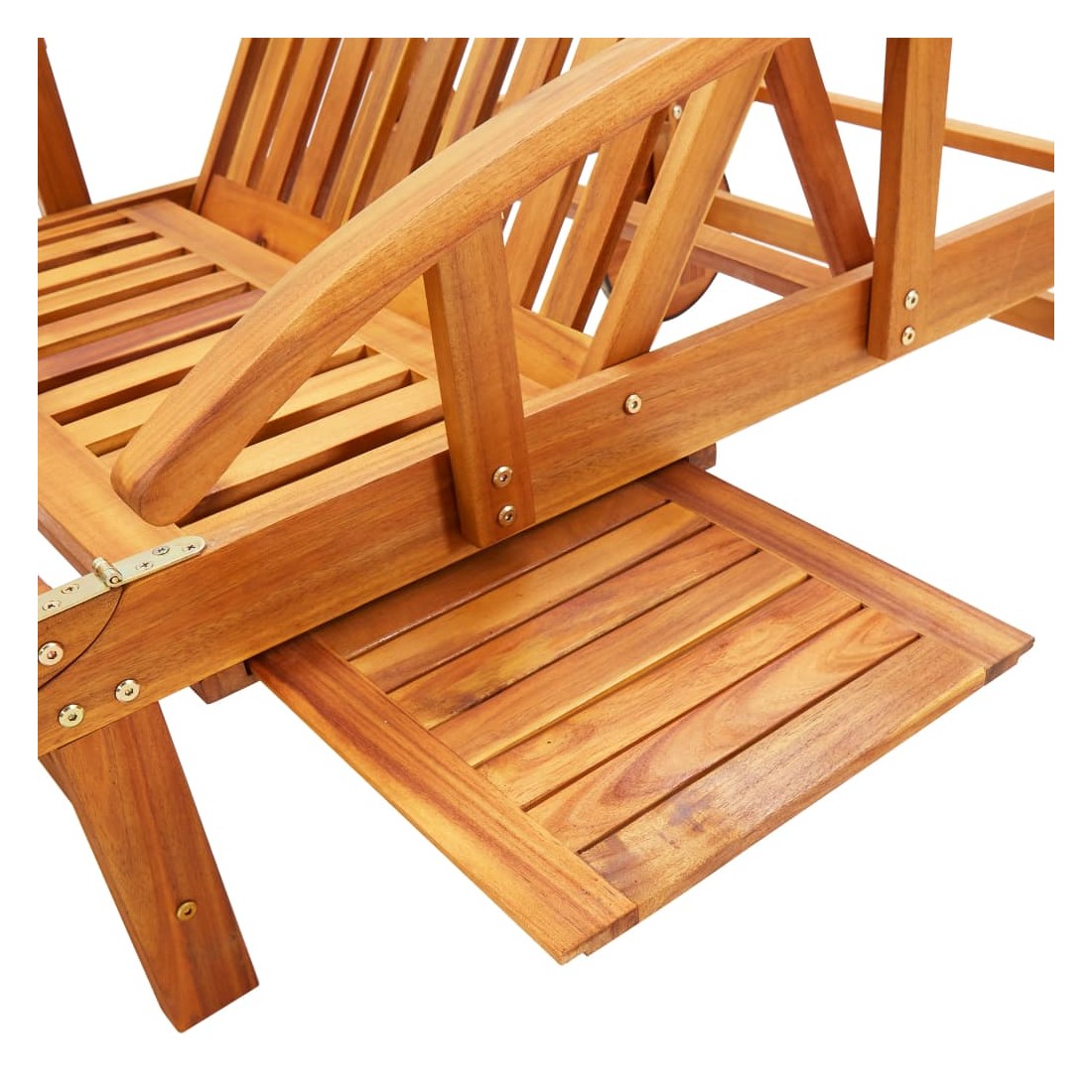 Avec cette chaise longue en bois d’acacia massif à la mode, vous trouverez toujours un endroit confortable pour vous détendre sur votre terrasse ou dans votre jardin. Cette chaise longue de jardin est fabriquée en bois d’acacia massif, ce qui la rend robuste et stable. La chaise longue de jardin peut être facilement déplacée autour de la maison grâce aux 2 roues. Le dossier et le repose-pied sont réglables, et vous pouvez également verrouiller la chaise longue en bois dans la position souhaitée. La table escamotable vous permet de placer votre téléphone, lunettes de soleil, boisson et autres petits articles. Le coussin ajoute un confort supplémentaire tout en vous prélassant. Chaque coussin comprend deux ensembles de cordes pour le fixer solidement sur le transat.