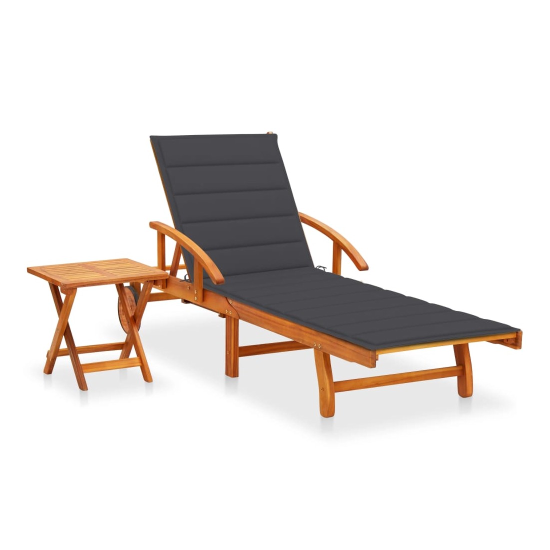 Chaise longue de jardin avec table et coussin Bois d'acacia