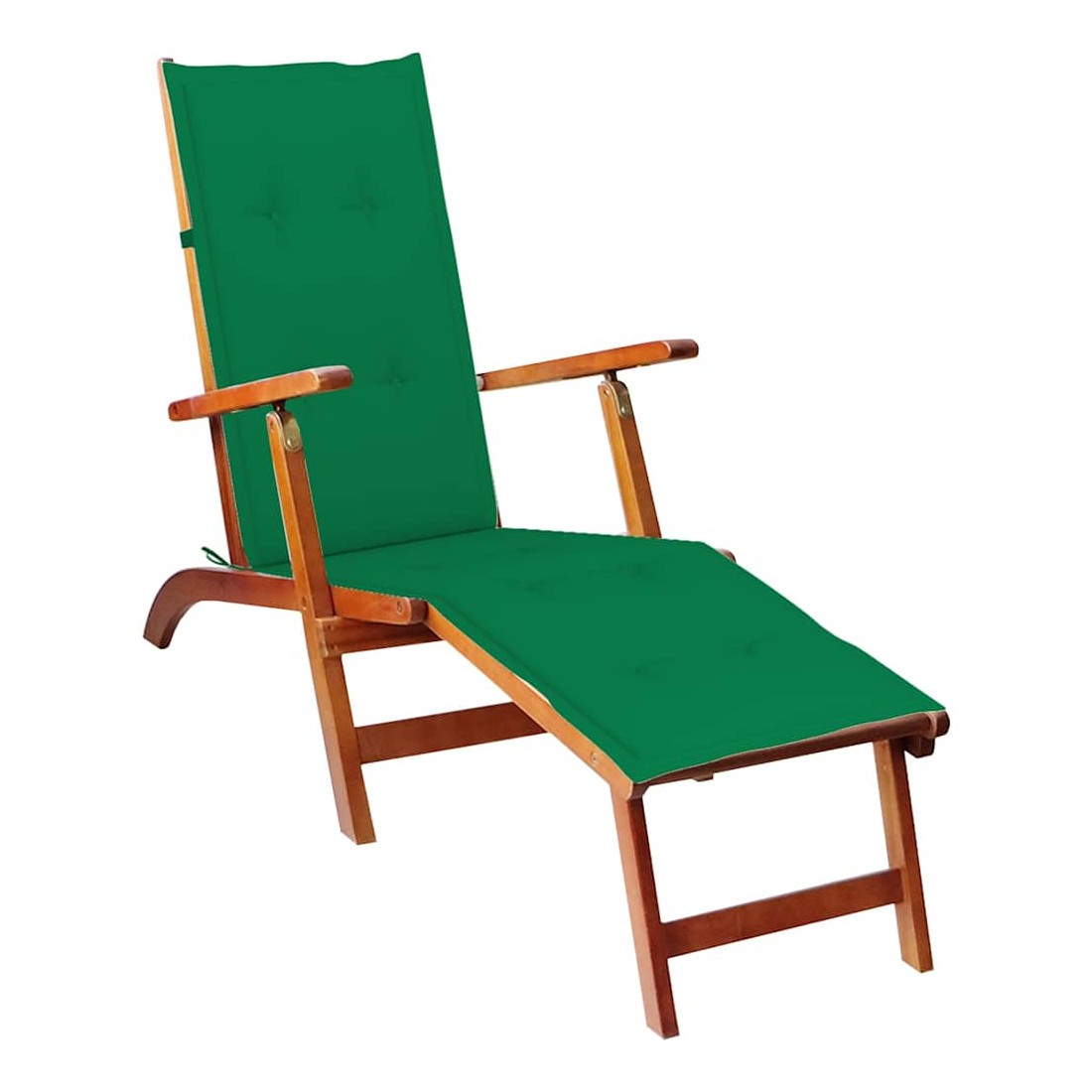 Chaise longue d'extérieur repose-pied et coussin Acacia solide
