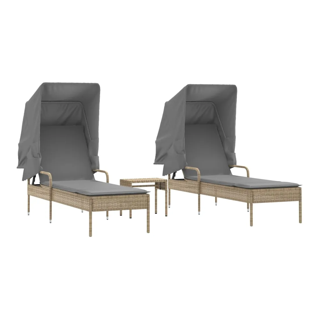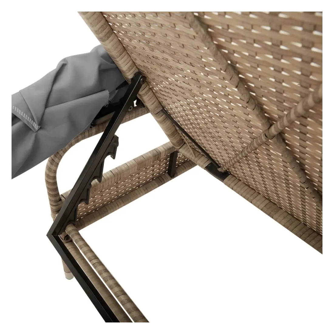 Détendez-vous et profitez du plein air avec ces chaises longues confortables ! Matériau durable : la résine tressée, également connue sous le nom de poly rotin, est un matériau synthétique solide et nécessitant peu d'entretien qui ressemble au rotin naturel. Il est léger, facile à nettoyer et couramment utilisé pour les meubles d'extérieur en raison de sa durabilité et de ses propriétés de résistance aux intempéries.Dossier réglables : ce meuble d'extérieur est doté d'un dossier à 4 positions réglables, ce qui vous permet de trouver facilement la position la plus confortable et la plus appropriée pour la détente.Auvent rétractable : grâce à l'auvent rétractable, vous pouvez créer un environnement extérieur frais et agréable tout au long de la journée.Table à thé pratique : ce mobilier d'extérieur est doté d'une table à thé, qui permet de ranger vos objets essentiels à portée de main.Expérience d'assise confortable : ce mobilier d'extérieur, doté d'un coussin épais rembourré, offre une expérience d'assise confortable. Bon à savoir :Pour que vos meubles d'extérieur restent beaux, nous vous recommandons de les protéger avec une housse imperméable.