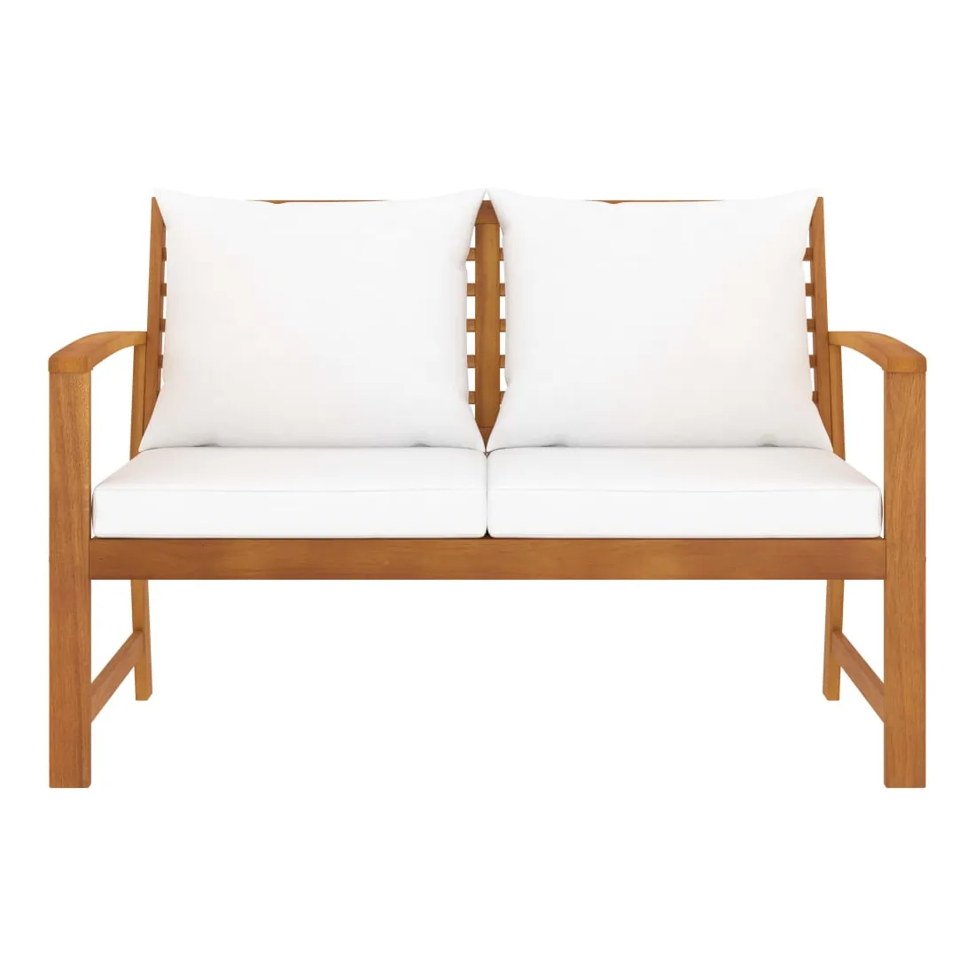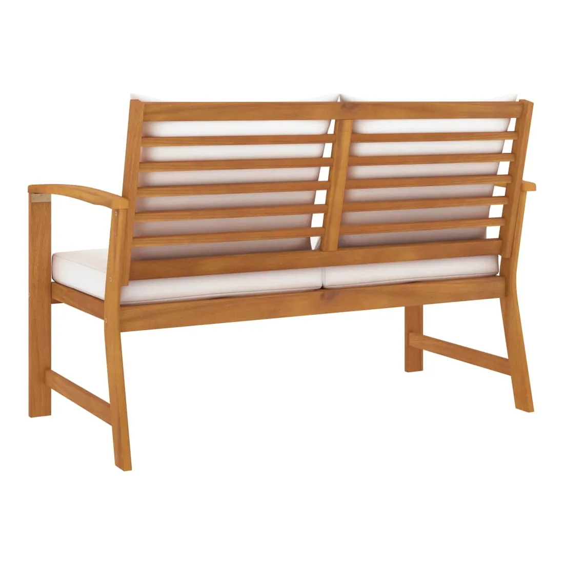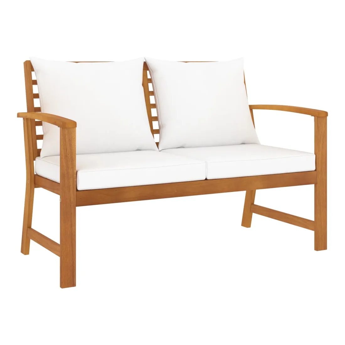 Cet élégant banc de jardin en bois ajoutera une touche de charme rustique à votre patio ou à tout autre espace de vie extérieur ! Matériau durable : le banc est fabriqué en bois d’acacia massif de haute qualité, un bois dur tropical, qui est résistant aux intempéries et très durable. Facile à nettoyer et à entretenir : grâce à la finition à l’huile, l’ensemble de meubles de patio a une couleur chaude et est facile à nettoyer et à entretenir. Expérience d’assise confortable : la livraison comprend des coussins de siège et de dossier avec rembourrage épais pour un confort ultime.