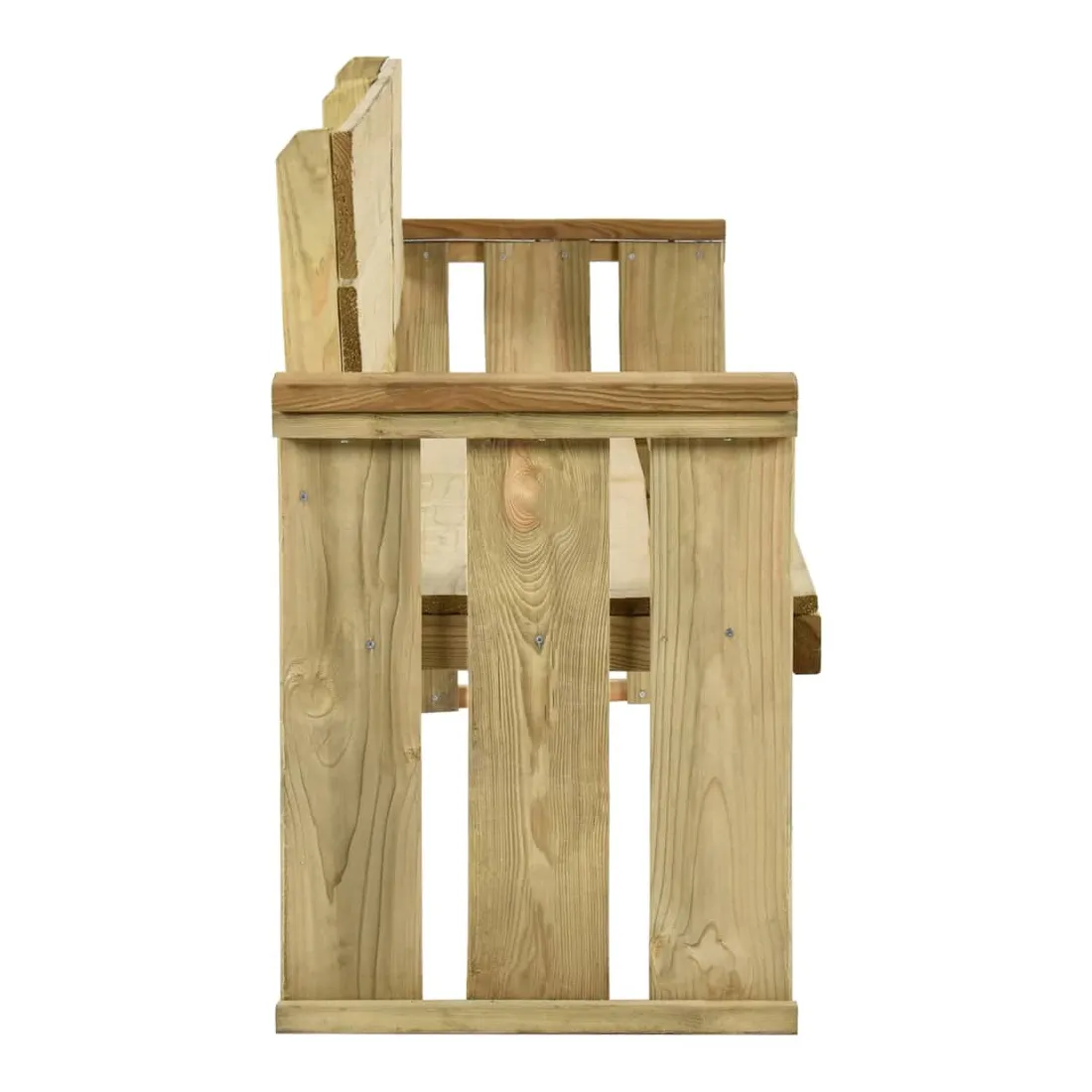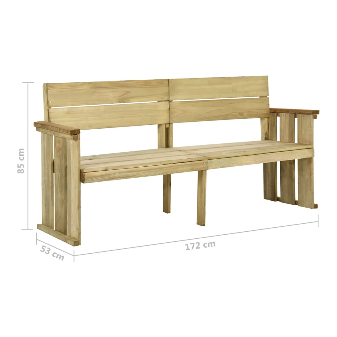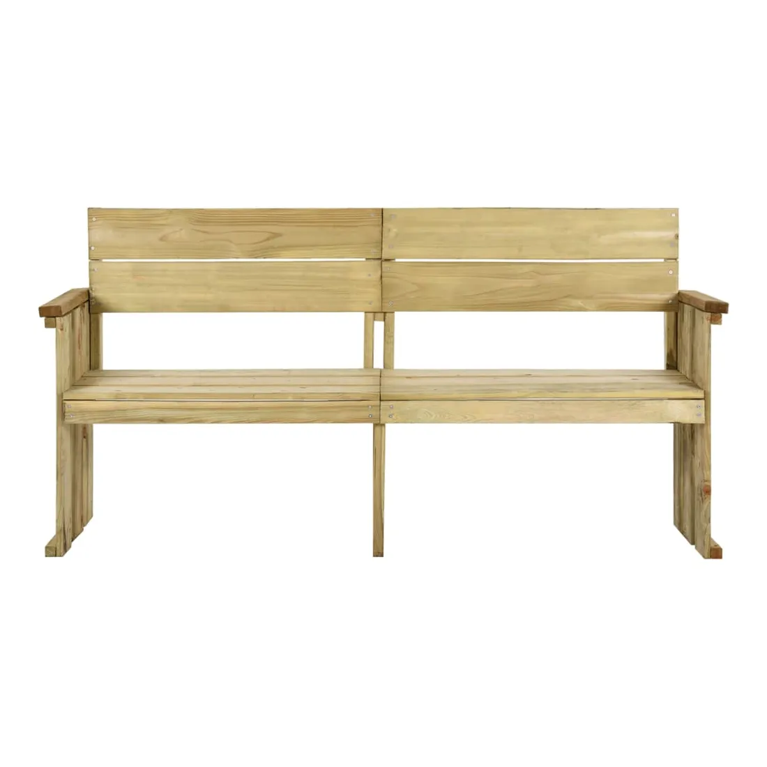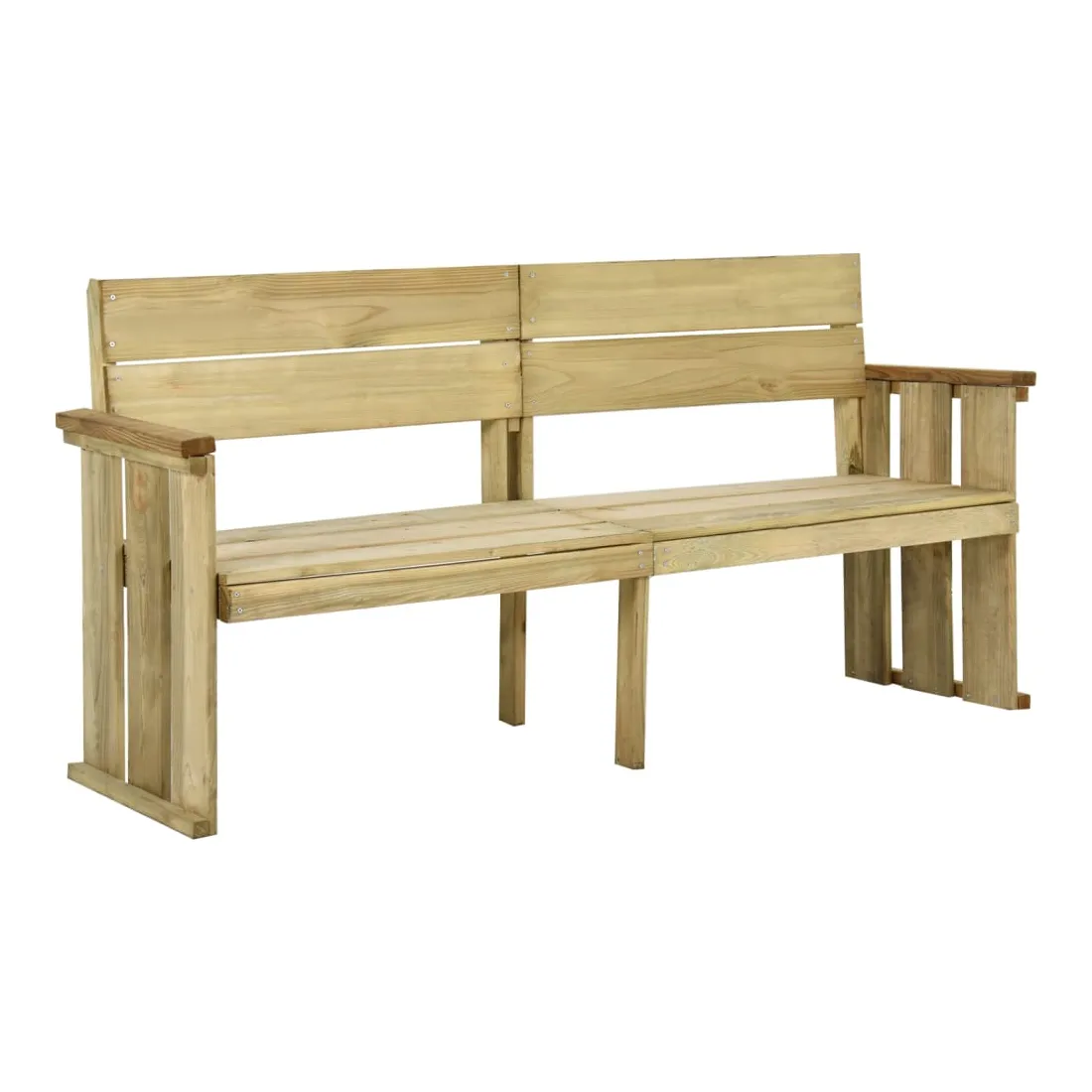 Détendez-vous sur ce banc de jardin en bois. Doté d'un design élégant, il sera un supplément pratique et classique à votre espace de vie extérieur. Fabriqué en bois de pin imprégné, le banc d'extérieur se distingue par sa durabilité et sa résistance aux intempéries. Vous pouvez placer le banc dans le jardin ou sur votre terrasse pour profiter de bons livres et d'une tasse de café. Le dossier et les accoudoirs contribueront à votre confort d'assise. Remarque : afin de prolonger la durée de vie des meubles d'extérieur, nous vous recommandons de les protéger avec une housse imperméable.