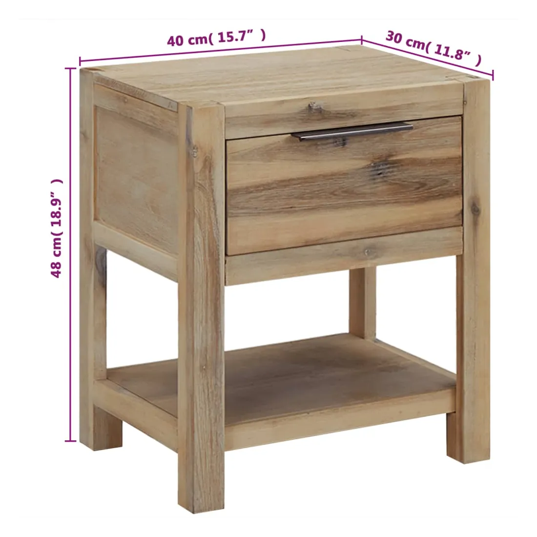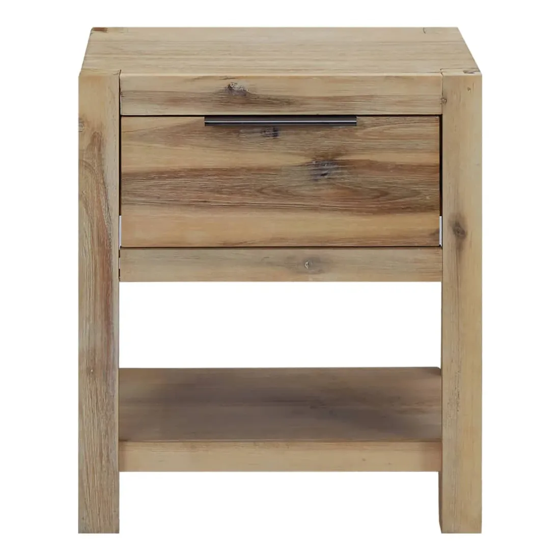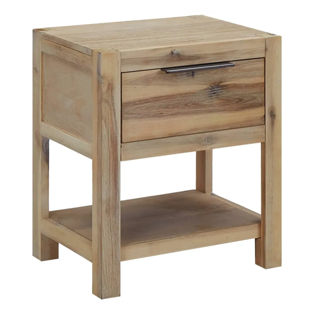 Cette table de chevet ajoutera une touche de charme rustique à votre décor intérieur. Elle peut également être utilisée comme une table salon ou comme support pour téléphone. La table de chevet est fabriquée à partir de bois d’acacia massif, de MDF et de placage d'acacia, ce qui la rend très durable et résistante à l'usure. La finition brossée donne à la table de chevet un aspect authentique, patiné et rétro et à votre maison une apparence plus traditionnelle. Le dessus robuste est idéal pour garder un réveil, une lampe de lecture, des livres, etc., ou pour afficher des cadres photo ou d'autres objets décoratifs. Le tiroir et la tablette offrent de l'espace pour garder tous les types d'articles plus petits organisés et à portée de main. Chaque produit est livré avec un manuel de montage dans la boîte pour un montage facile.