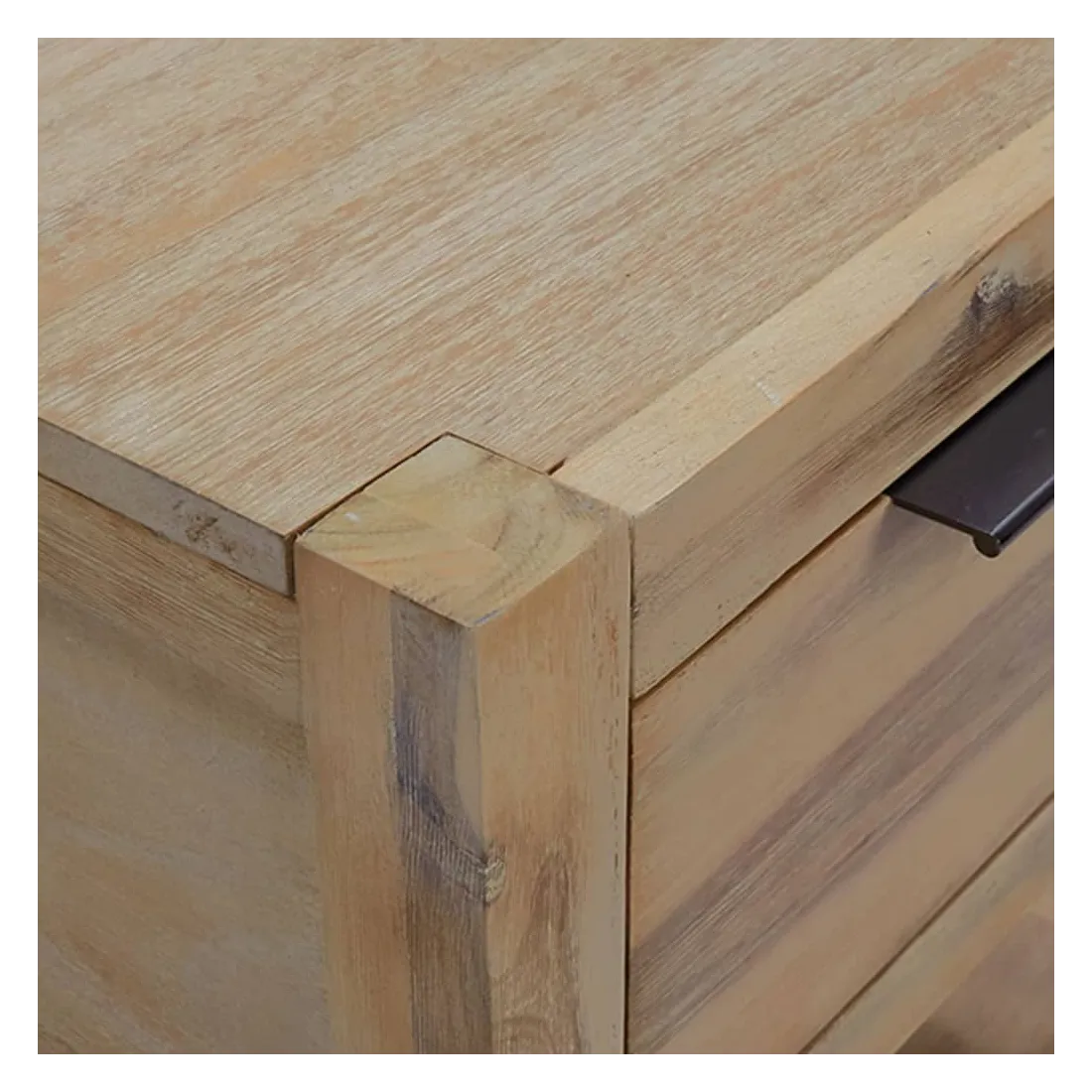 - Matériau : bois d'acacia massif avec une finition brossée, MDF, placage d'acacia