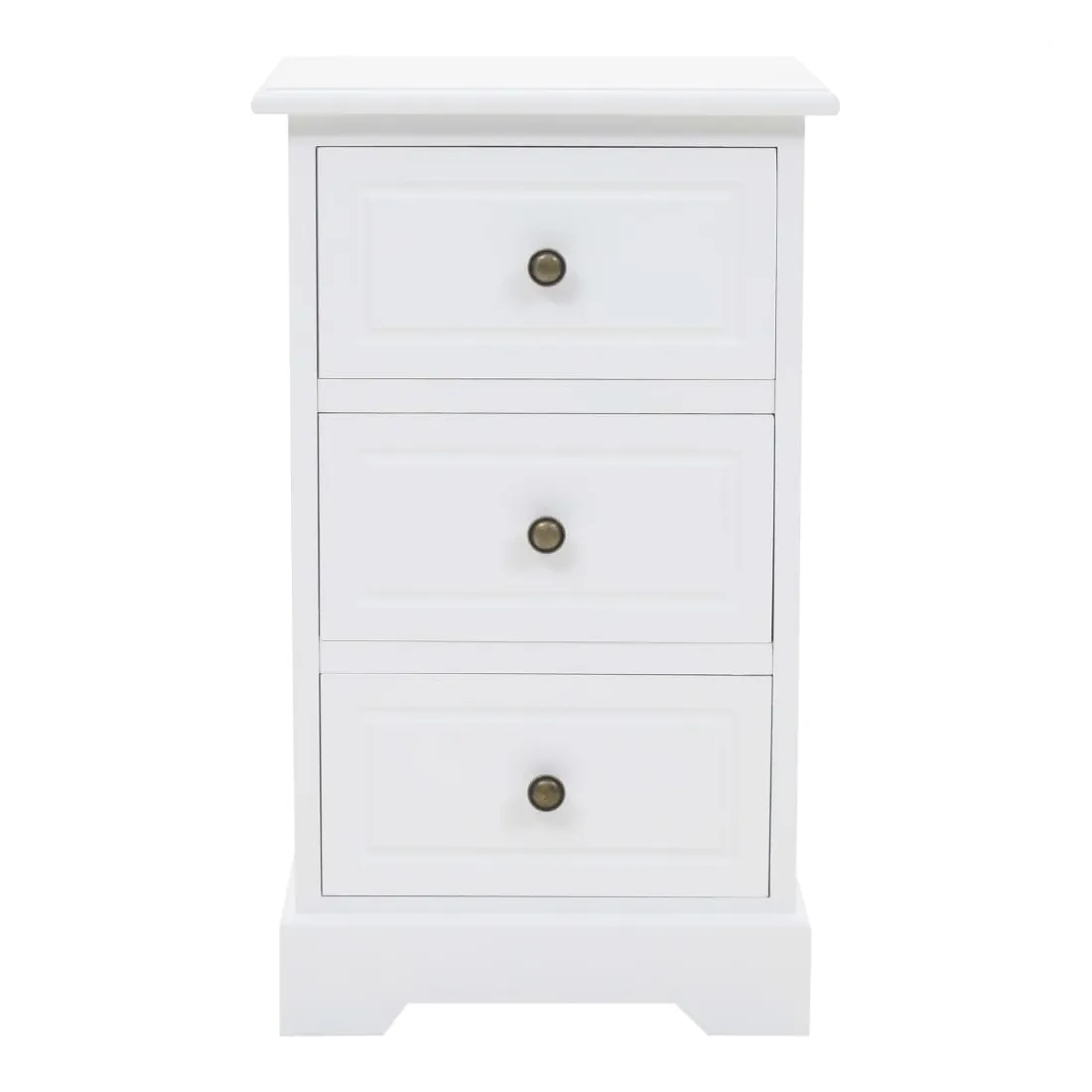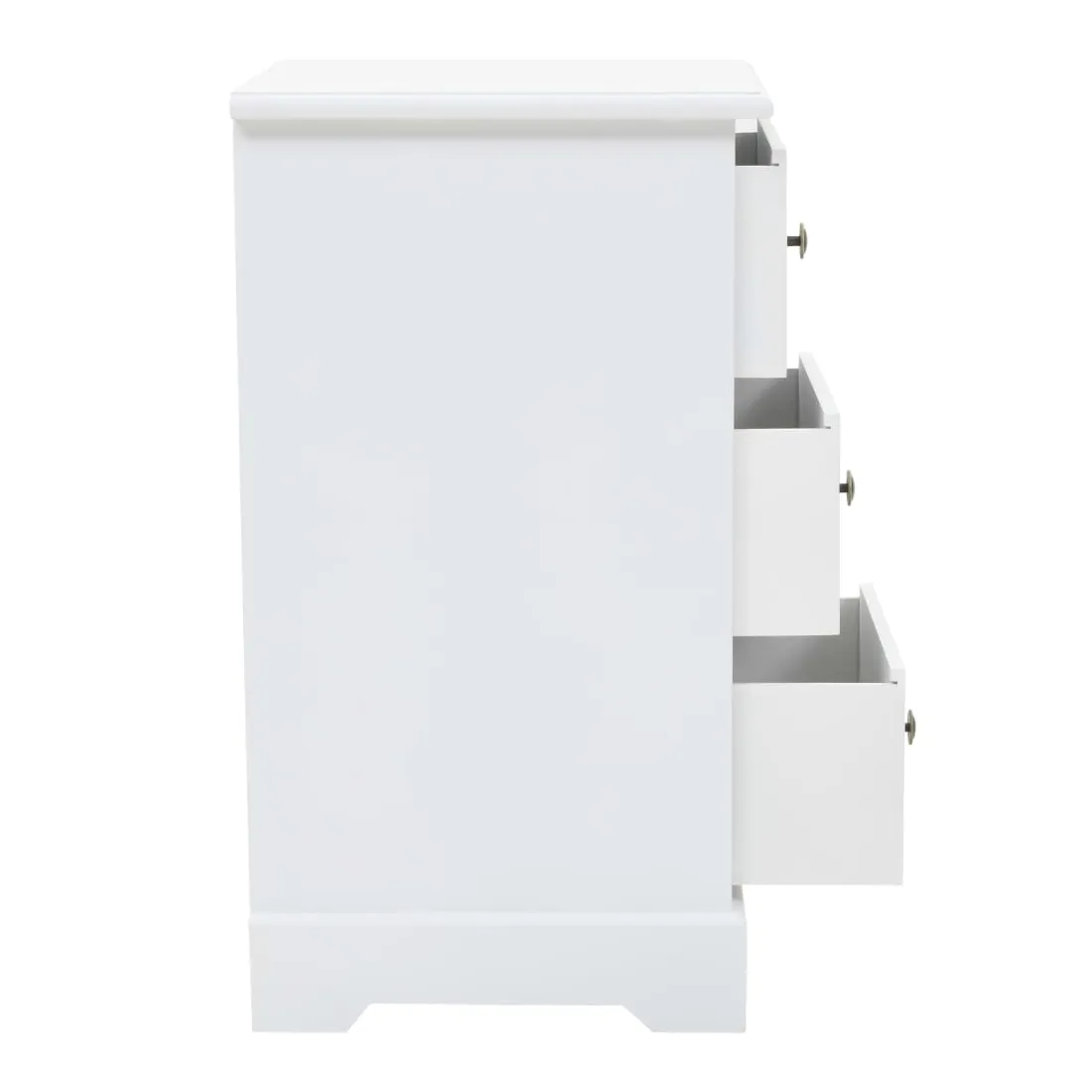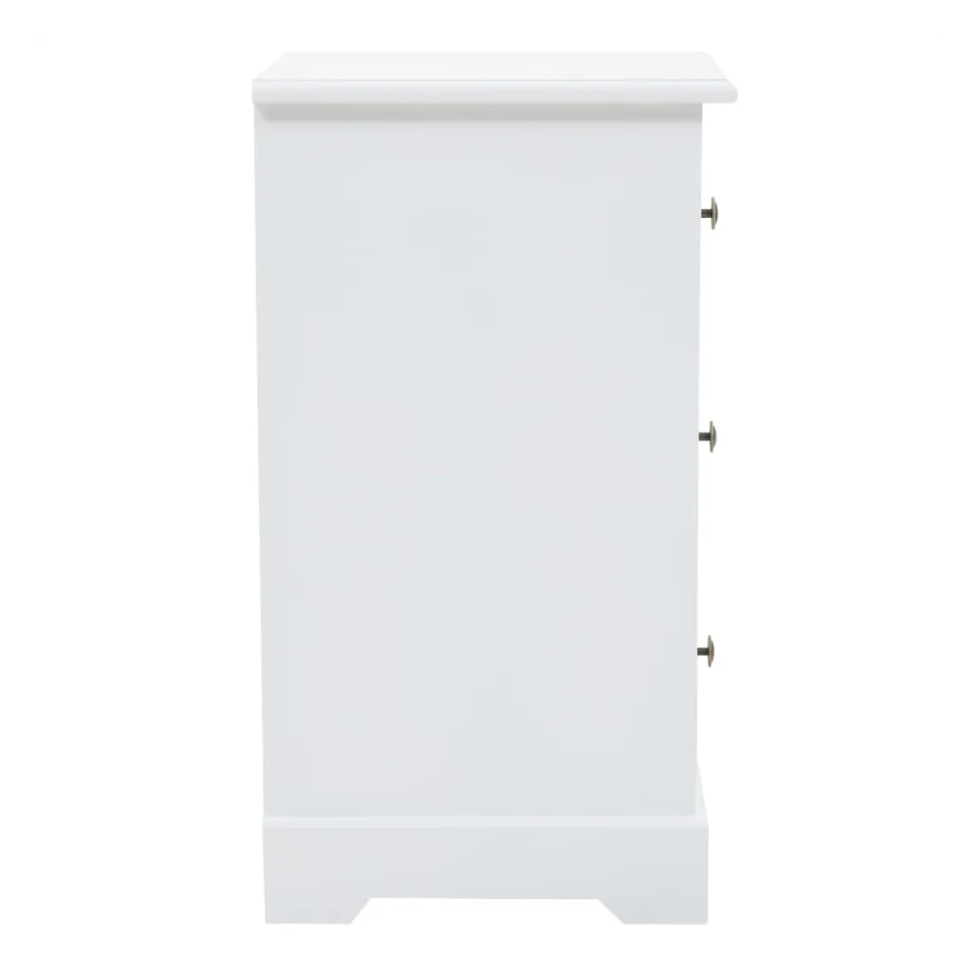 Cette table de chevet sera un supplément parfait à la décoration de votre chambre à coucher grâce à son design chic et à sa finition blanche épurée. Elle peut également être utilisée comme armoire latérale. La table de nuit est en MDF et décorée de poignées métalliques sur les tiroirs. Conçue avec 3 tiroirs, elle offre un grand espace de rangement pour garder les petits objets bien rangés et à portée de main. Vous pouvez également placer votre réveil, un verre d'eau rafraîchissant ou des objets décoratifs comme des cadres photo sur la surface supérieure du meuble.