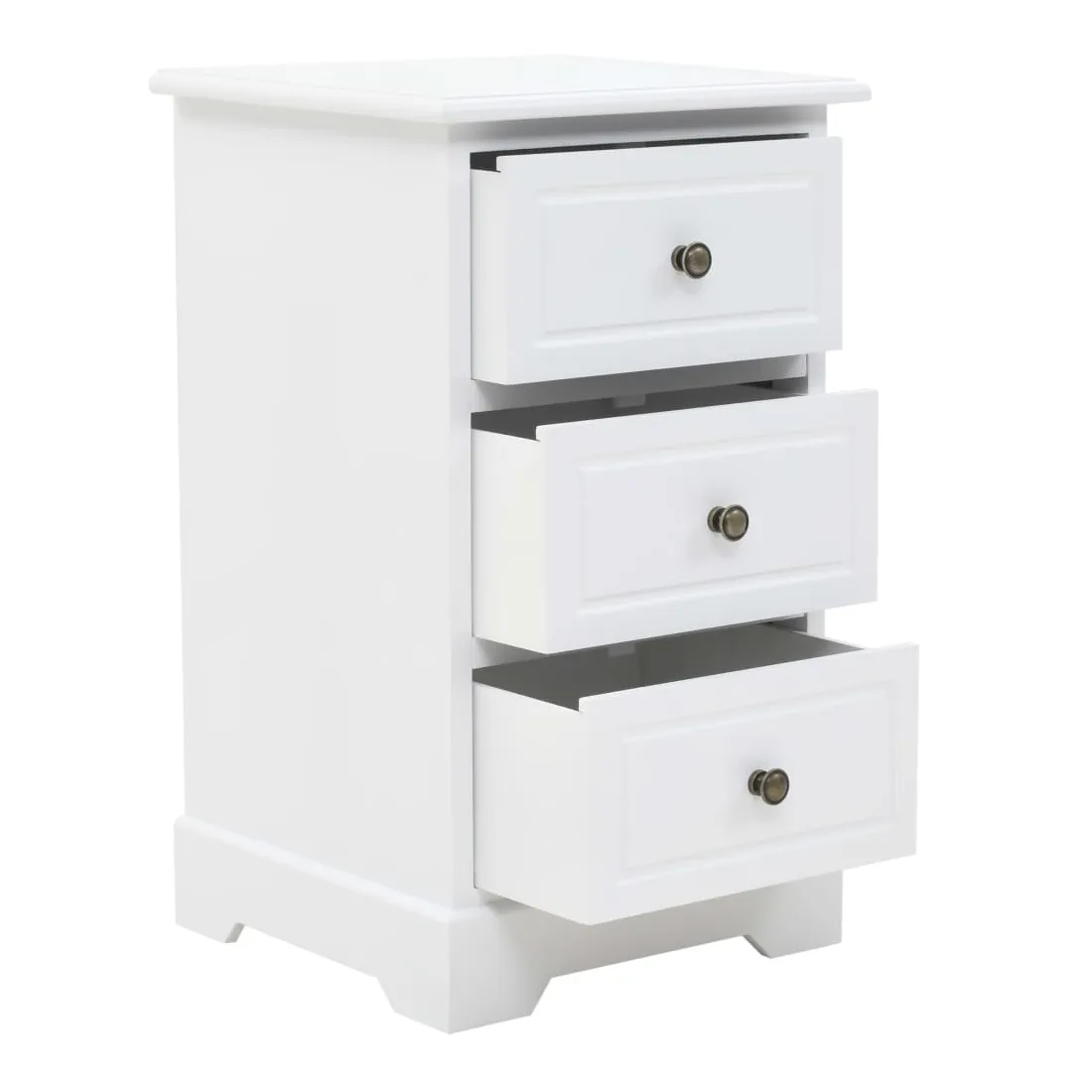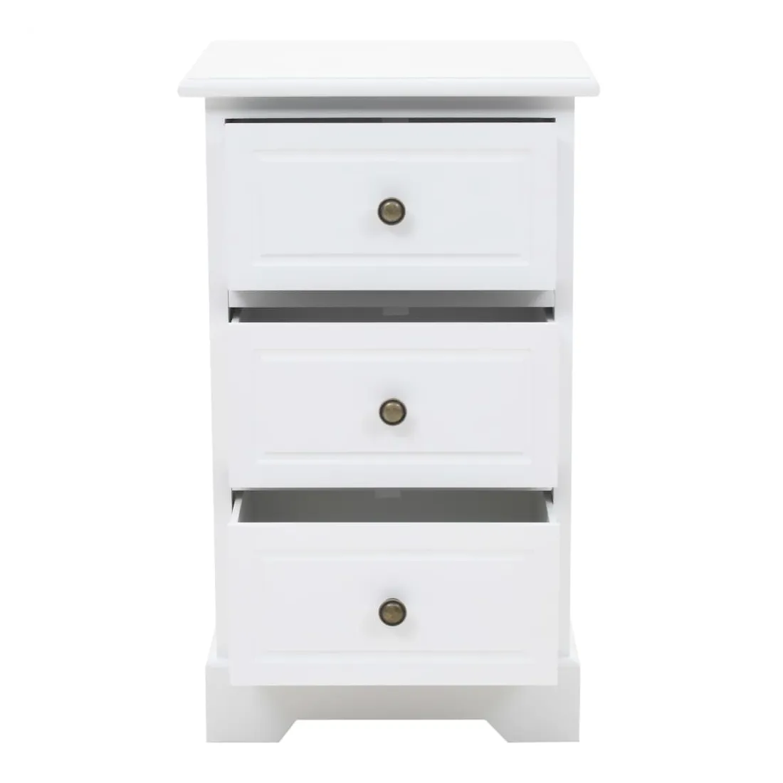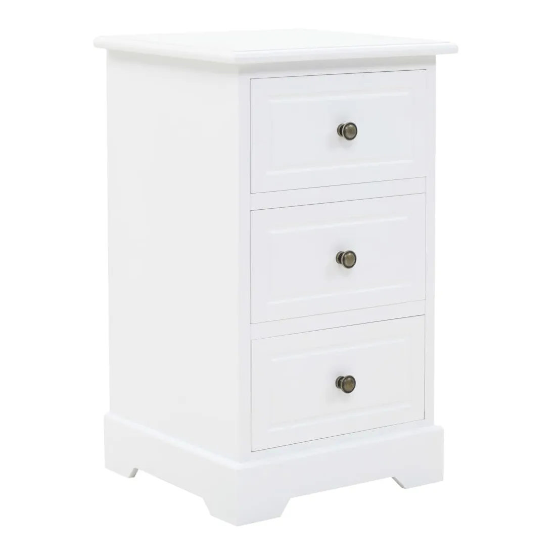 Cette table de chevet sera un supplément parfait à la décoration de votre chambre à coucher grâce à son design chic et à sa finition blanche épurée. Elle peut également être utilisée comme armoire latérale. La table de nuit est en MDF et décorée de poignées métalliques sur les tiroirs. Conçue avec 3 tiroirs, elle offre un grand espace de rangement pour garder les petits objets bien rangés et à portée de main. Vous pouvez également placer votre réveil, un verre d'eau rafraîchissant ou des objets décoratifs comme des cadres photo sur la surface supérieure du meuble.
