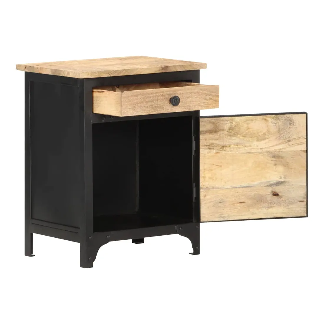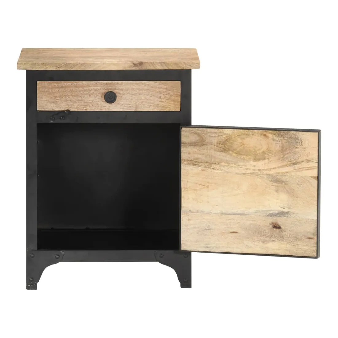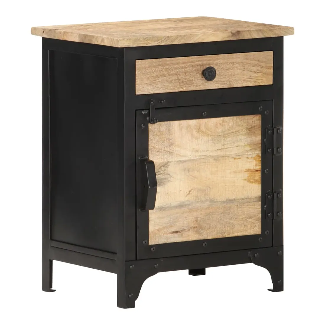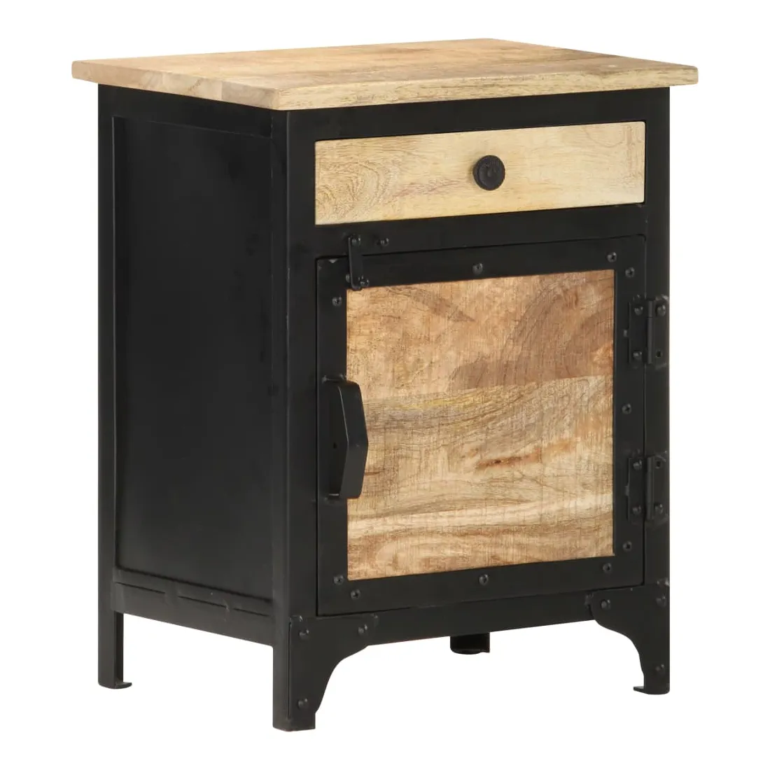 Cette table de chevet en bois ajoute un aspect industriel à votre chambre à coucher. L’armoire de lit est faite à la main à partir de bois de manguier massif, ce qui la rend robuste et stable. Le savoir-faire artisanal et les beaux grains de bois rendent chaque meuble unique et légèrement différent l'un de l'autre. Cette table de chevet dispose également d’un grand espace de rangement pour garder vos articles essentiels organisés et à portée de main. Remarque importante : les couleurs et les grains peuvent varier d'une pièce à l'autre, rendant chaque pièce unique. La livraison est aléatoire, ce qui garantit l'exclusivité et l'individualité de votre produit.