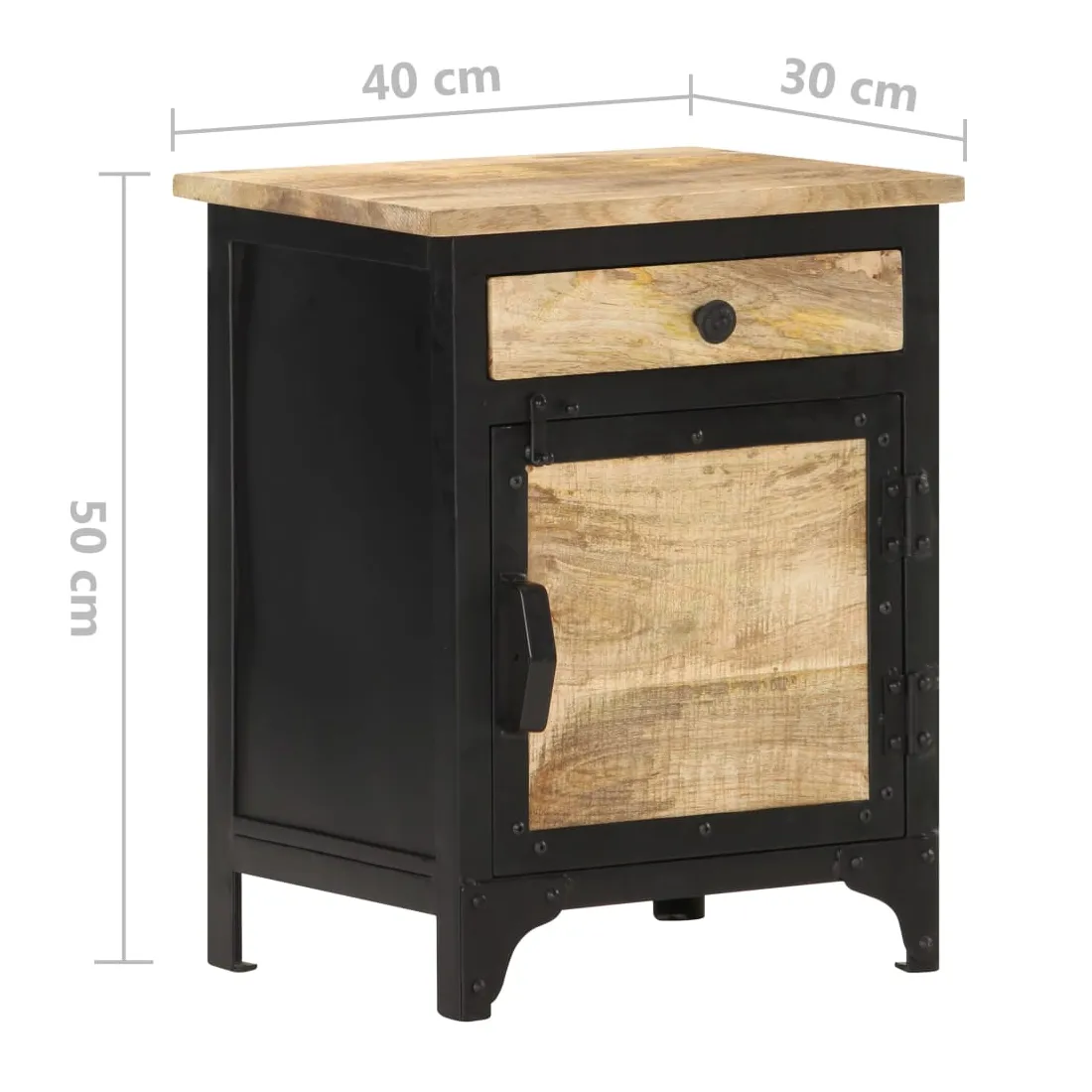 - Matériau : bois de manguier massif avec finition naturelle et noire