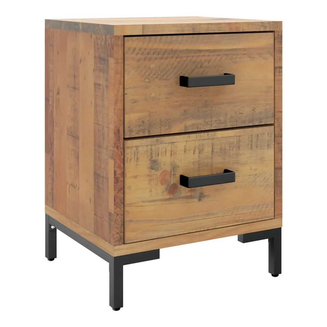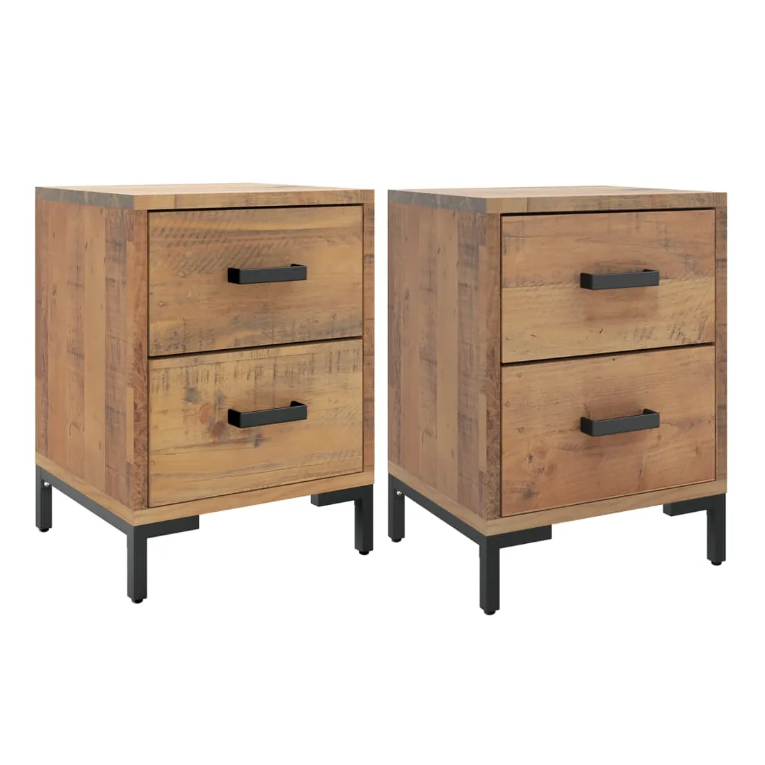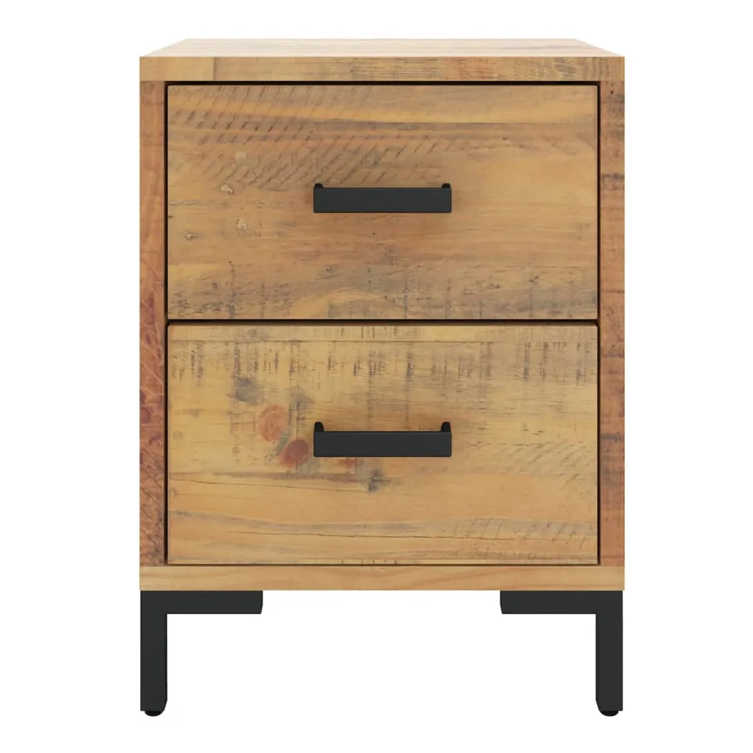 Ajoutez une touche vintage à votre pièce avec la table de chevet ! Elle est un supplément pratique et décoratif à votre maison. Matériau durable : le bois de pin massif est un matériau naturel magnifique. Le bois de pin a un grain droit et les nœuds donnent au matériau son aspect caractéristique et rustique.Grand espace de rangement : l'armoire latérale est conçue avec 2 tiroirs pour garder les choses organisées et à portée de main.Dessus robuste : l'armoire latérale est dotée d'un dessus robuste, idéal pour placer vos tasses, livres et autres objets décoratifs.Pieds en métal : les pieds en métal de ce meuble de chambre à coucher assurent la solidité et la stabilité. Remarque :Chaque produit est livré avec un manuel de montage dans la boîte pour un montage facile.
