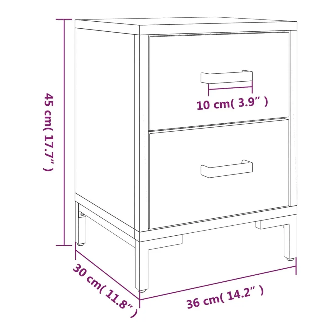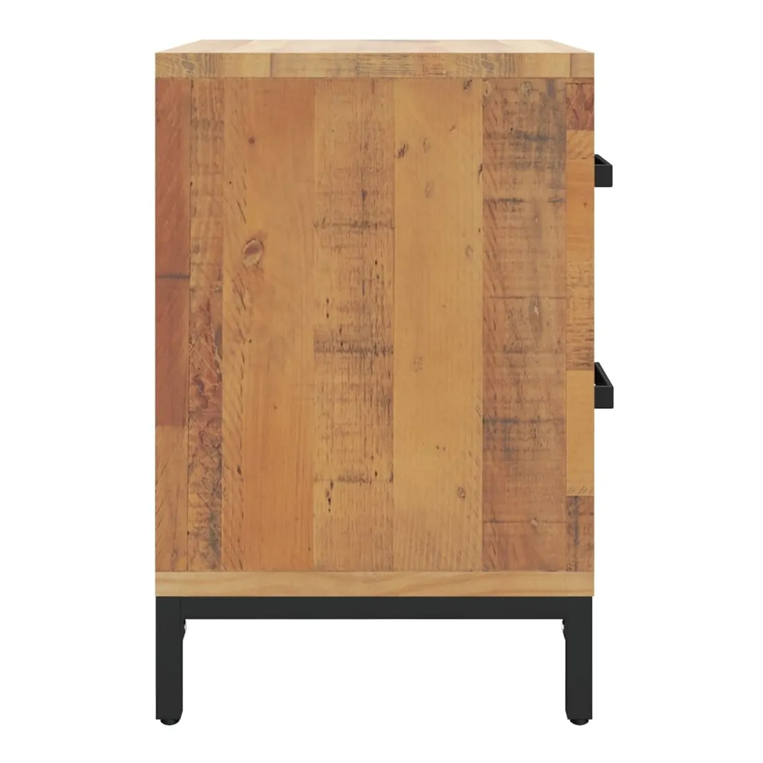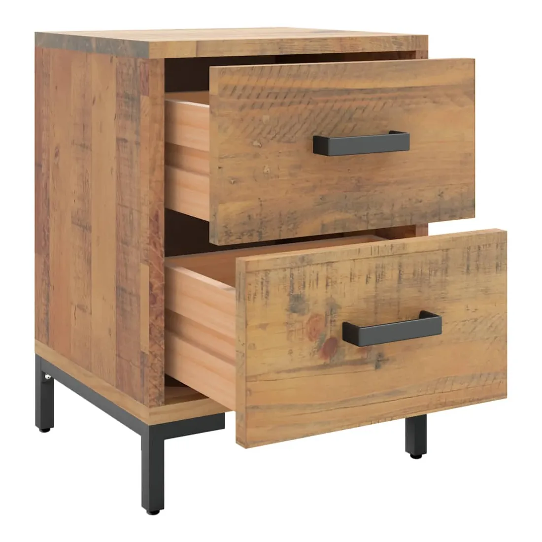 Ajoutez une touche vintage à votre pièce avec la table de chevet ! Elle est un supplément pratique et décoratif à votre maison. Matériau durable : le bois de pin massif est un matériau naturel magnifique. Le bois de pin a un grain droit et les nœuds donnent au matériau son aspect caractéristique et rustique.Grand espace de rangement : l'armoire latérale est conçue avec 2 tiroirs pour garder les choses organisées et à portée de main.Dessus robuste : l'armoire latérale est dotée d'un dessus robuste, idéal pour placer vos tasses, livres et autres objets décoratifs.Pieds en métal : les pieds en métal de ce meuble de chambre à coucher assurent la solidité et la stabilité. Remarque :Chaque produit est livré avec un manuel de montage dans la boîte pour un montage facile.