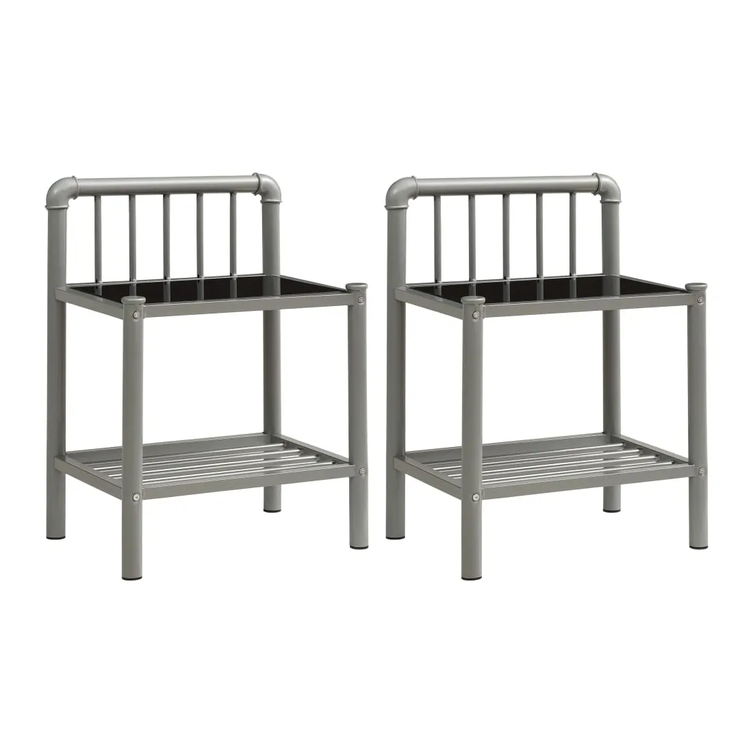 Cet ensemble de 2 tables de chevet, au design simple mais élégant, fait un excellent supplément à votre décoration intérieure. Construite à partir d’un cadre métallique, l’armoire latérale est d’une grande stabilité et robustesse. L’étagère en verre est facile à nettoyer et offre suffisamment d’espace pour garder vos articles organisés et à portée de main. Elle peut également être utilisée comme support de téléphone, table de chevet et table de nuit, etc.
