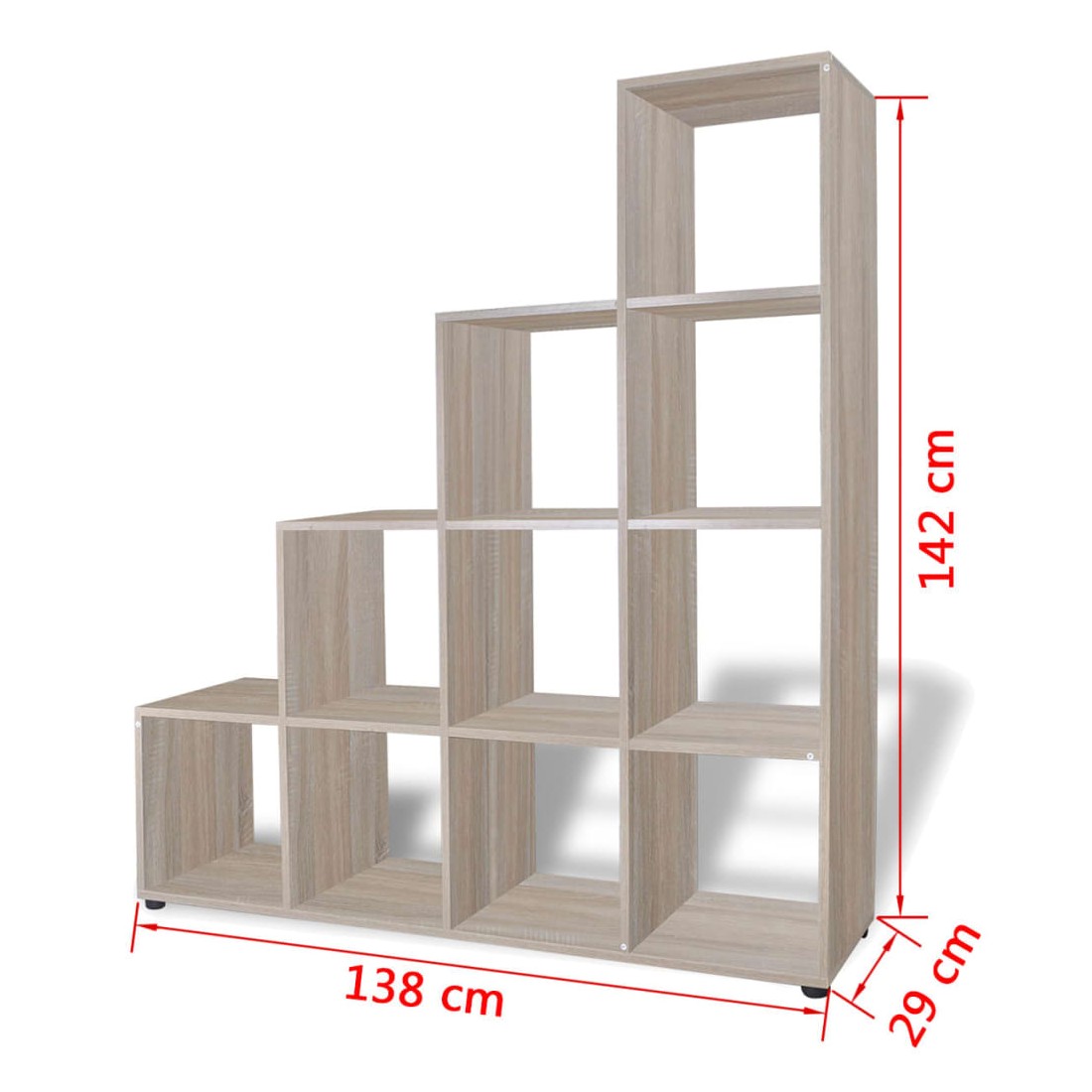 Cette bibliothèque, avec sa structure unique inspirée par un escalier fonctionnel, deviendra le point central de toute pièce. Cette bibliothèque étonnante comporte 10 compartiments ouverts qui constituent l'endroit idéal pour exposer des objets tels que des livres, des objets de collection, des photos, des récompenses, des plantes en pot, etc. Composée de matériaux de haute qualité , la bibliothèque est très solide et durable. La livraison comprend également des accessoires d'assemblage. L'assemblage est très facile.