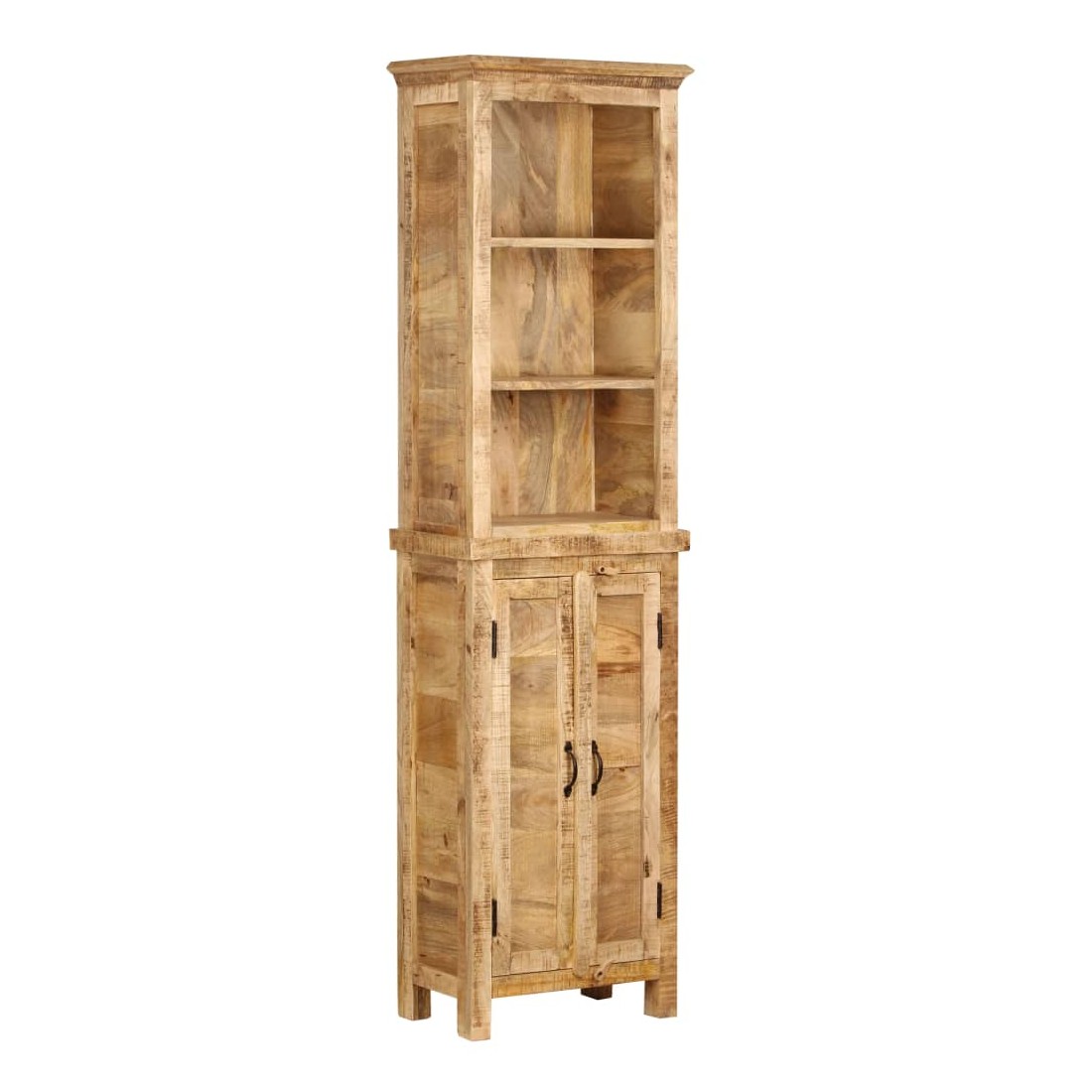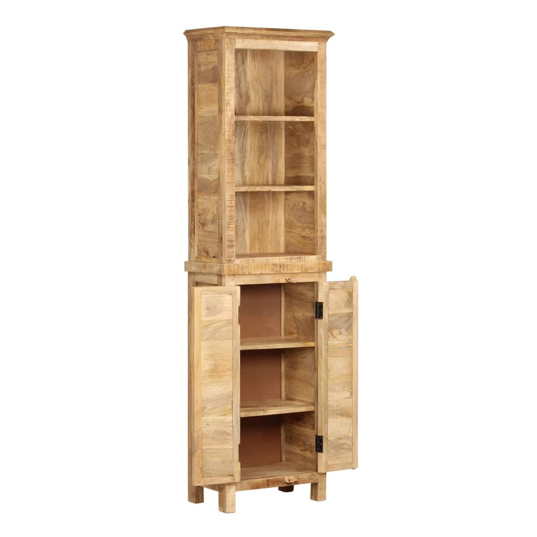 Cette bibliothèque rustique en bois massif de manguier, avec trois étagères et une section de rangement en bas, vous donnera beaucoup d'espace de rangement. Les trois étagères supérieures sont idéales pour ranger un grand nombre de livres, magazines, CD, dossiers, etc. Dans l'armoire de rangement inférieure, vous pouvez ranger divers objets et fermer les portes à l'aide de verrous de porte. Cette bibliothèque est fabriquée en bois de manguier massif, ce qui lui permet d'être très robuste et durable. Chaque étape du processus de fabrication est réalisée avec le plus grand soin, que ce soit le polissage, la peinture ou le cirage. L'étagère de rangement à l'aspect rustique sera un excellent supplément à votre maison ! L'article est facile à assembler. Remarque importante : les couleurs va