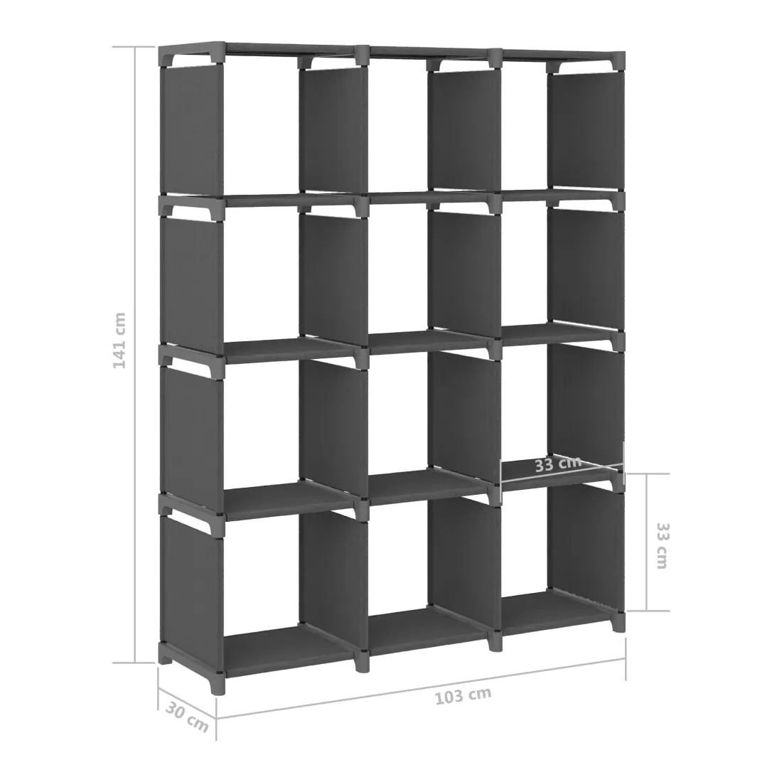 Notre étagère de présentation ajoute un look moderne à votre décoration intérieure. Le support de stockage est fait de tissu et d'un cadre en acier, ce qui le rend fort et stable. Cette étagère autoportante a 12 compartiments ouverts et peut servir d'endroit idéal pour afficher des livres, des objets de collection, des photos, des récompenses, de petites plantes en pot, etc. Grâce à sa construction légère, cet organisateur de maison est également facile à déplacer.