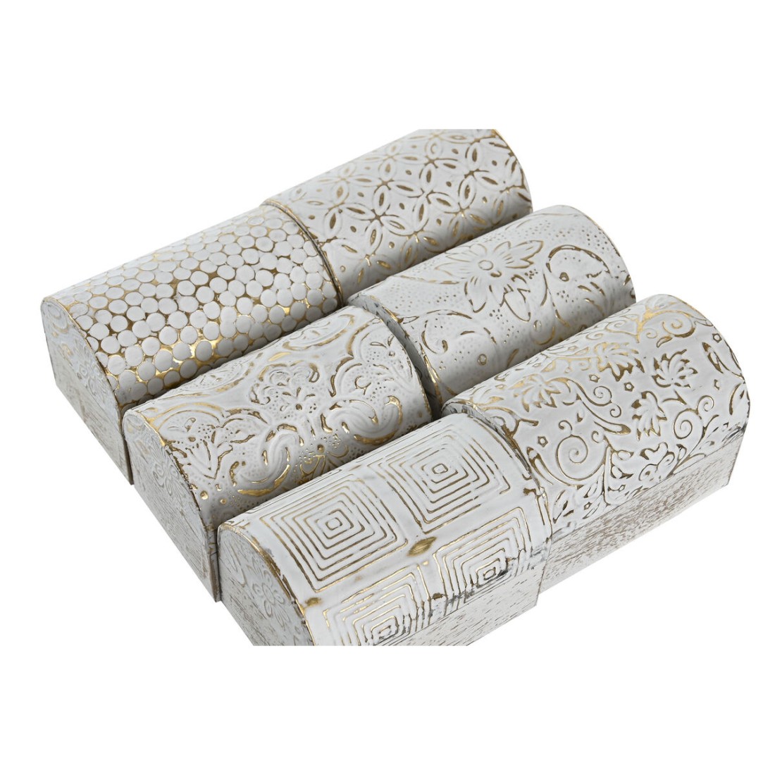 Jewelry box DKD Home Decor White Golden Aluminium Mango wood 7,5 x 5,3 x 5,3 cm (6 Units)
