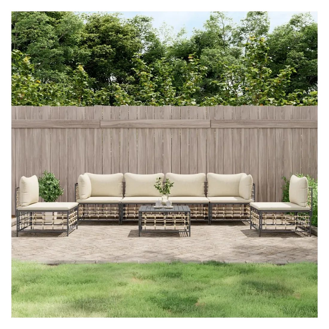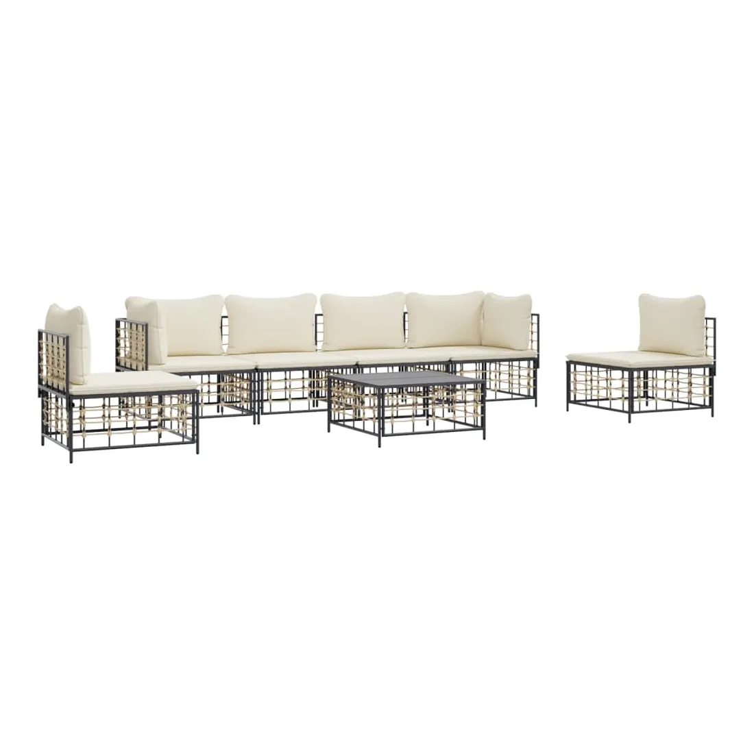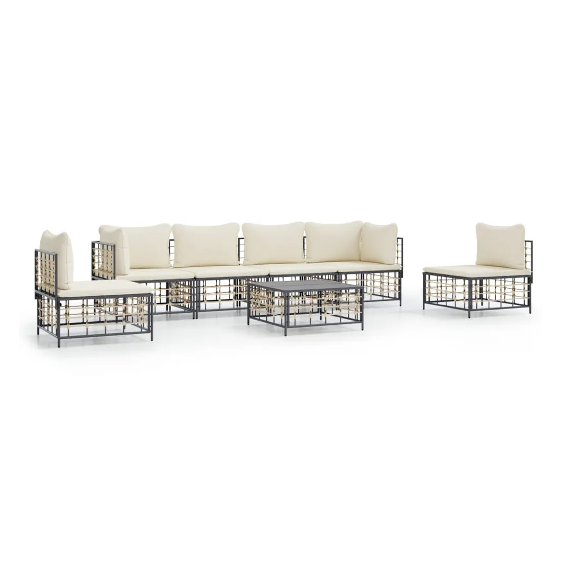 Salon de jardin 7 pcs avec coussins anthracite résine tressée