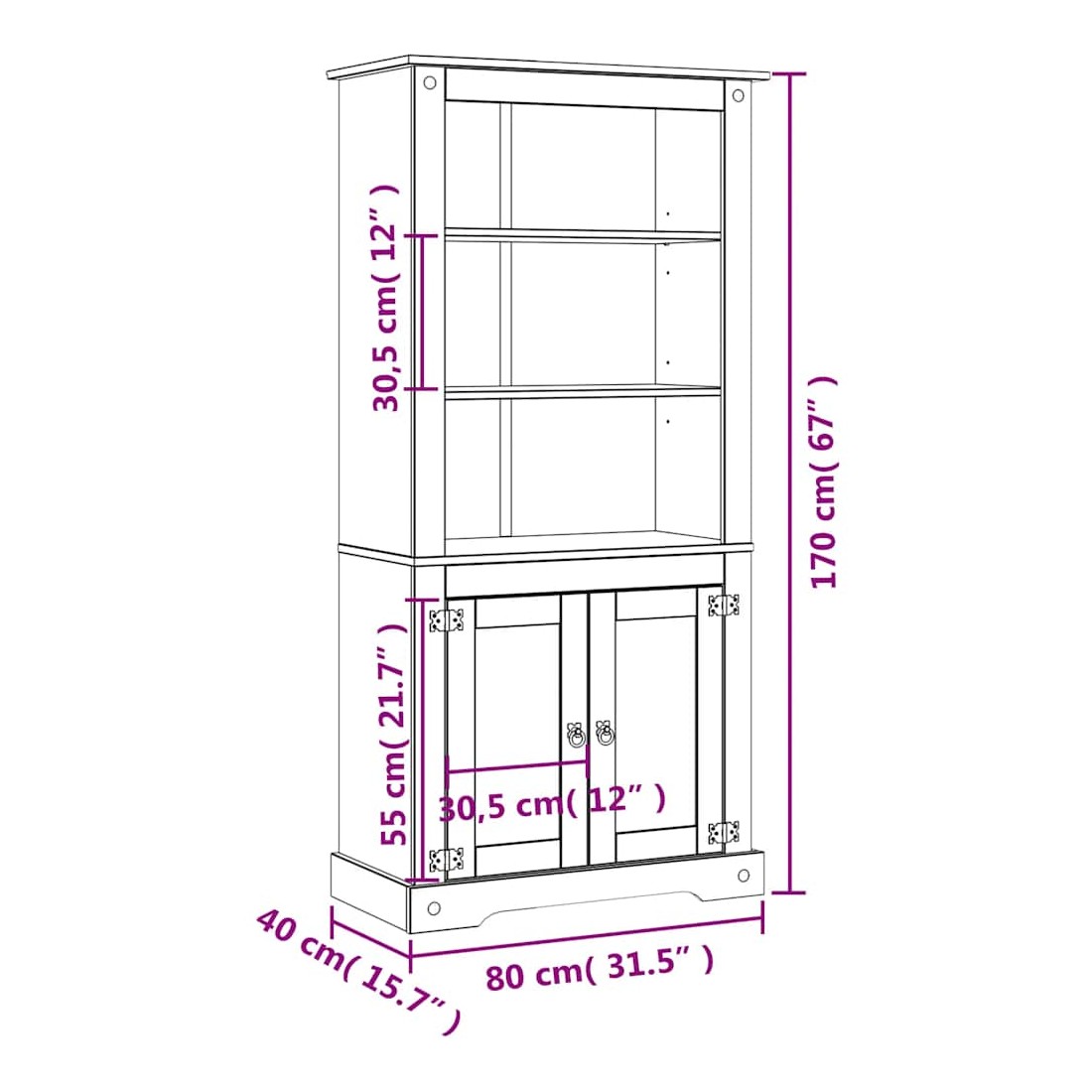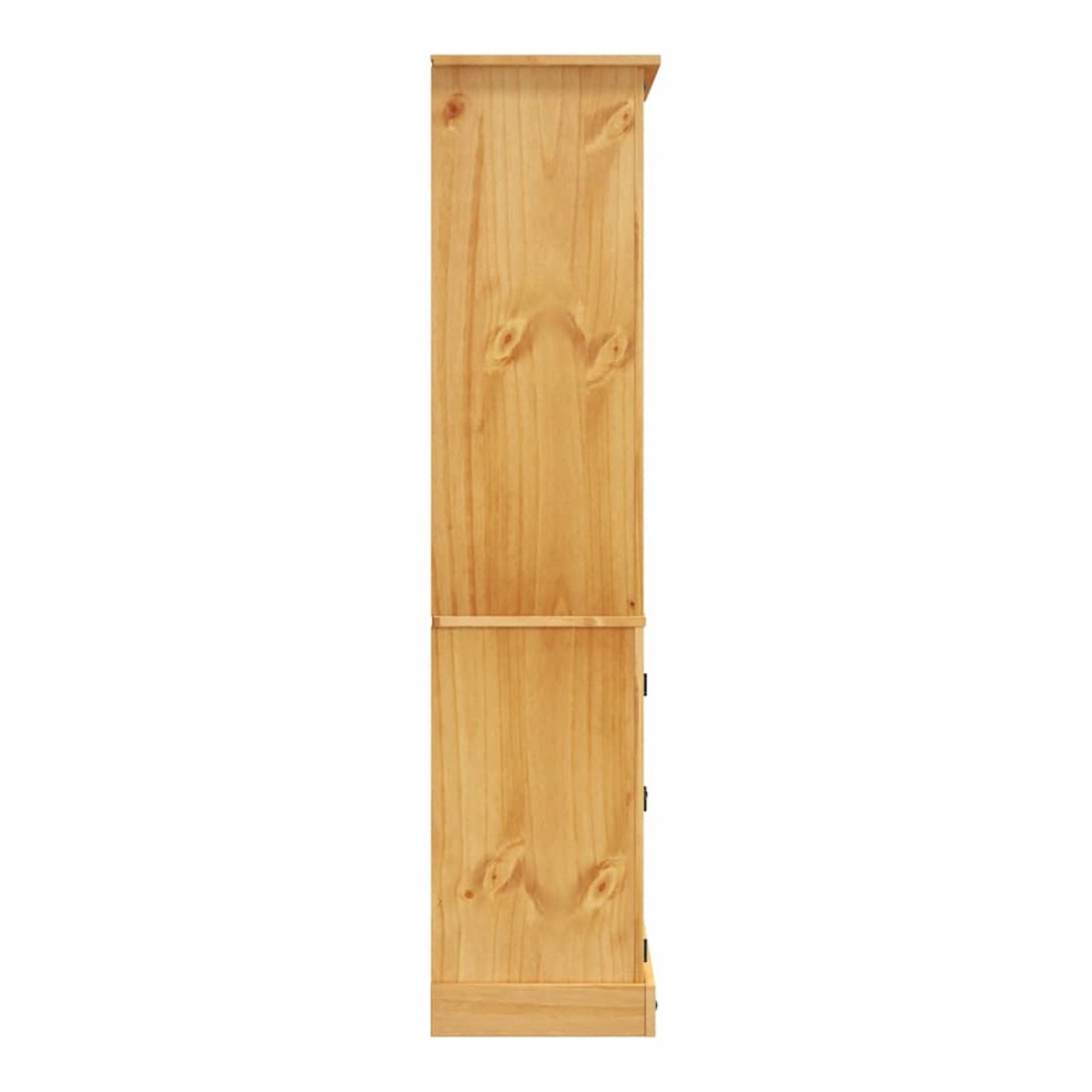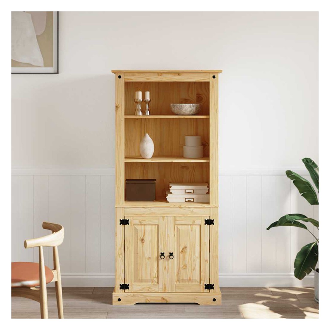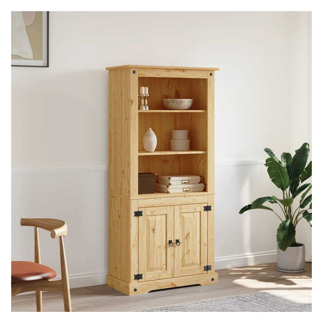 Ce placard en bois de haute qualité est un meuble dans le style mexicain « Corona ». Le pin ciré avec des détails en métal noir dégage un charme mexicain rustique qui fera du buffet un excellent supplément à votre salon, coin repas ou entrée. Le buffet haut peut également être utilisé comme vitrine ou bibliothèque. Fabriqué à partir de bois de pin massif, le placard est solide et robuste. Les 3 étagères ouvertes en dessus sont idéales pour ranger des livres ou de la verrerie et afficher des objets décoratifs. L’armoire en dessous a deux étagères et offre un grand espace de rangement. L'assemblage est très facile.