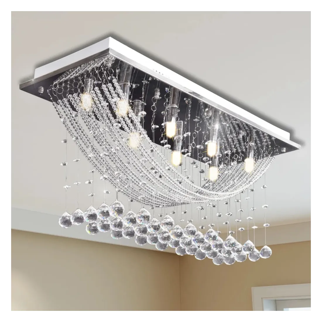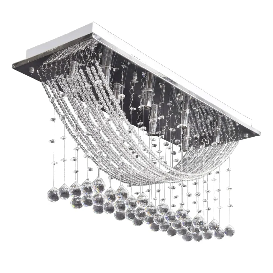 Ce plafonnier magnifique et imposant avec une décoration scintillante de cristal de haute qualité est adapté à une utilisation domestique et commerciale. Cette lampe de plafond moderne sera un point de convergence de tous les regardes, et fera un excellent ajout à tout décor. Le cristal de verre brillant est très lumineux et très translucide. Les perles de cristal claires de haute qualité seront capturer et refléter efficacement la lumière, créant un magnifique jeu de couleurs à travers le spectre. Cette lampe de plafond élégante ajoutera une touche de luxe à votre décor! Le structure de la lampe est en métal de haute qualité, et il peut être facilement monté sur le plafond. La livraison inclue 1 x plafonnier.