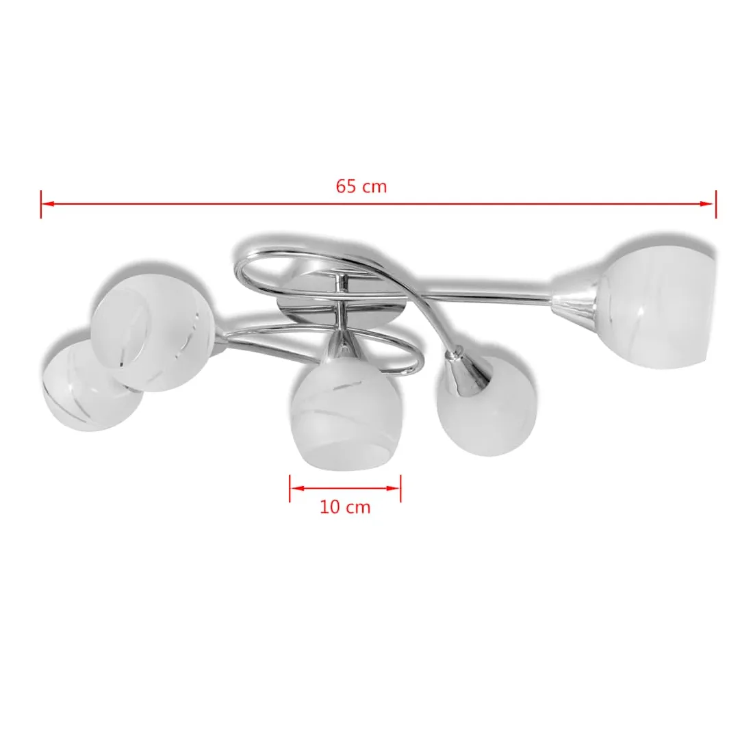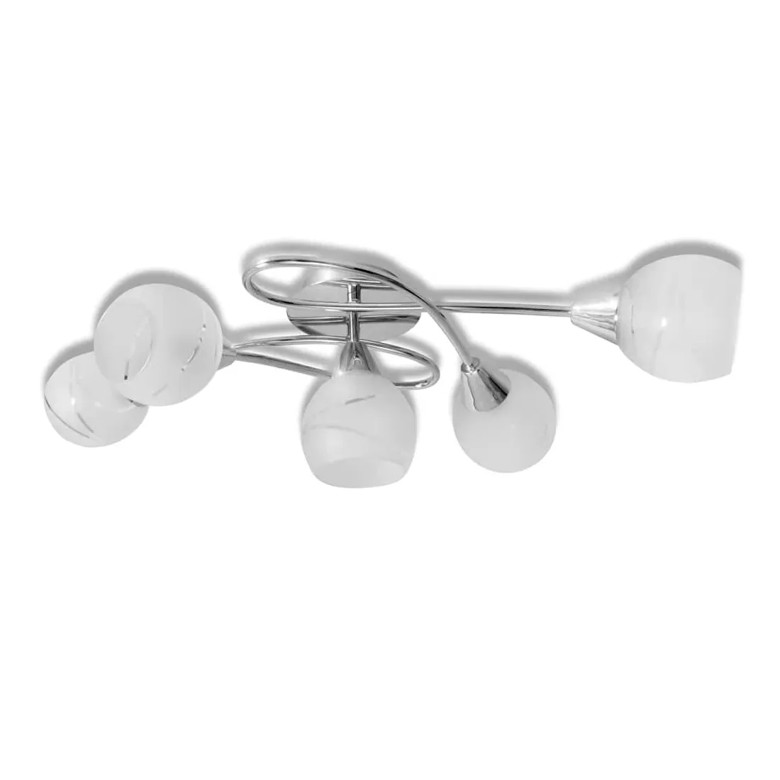 Ce plafonnier unique, avec 5 abat-jours sphériques en verre, sera un excellent choix pour décorer votre salon ou chambre à coucher. Sa finition chromée donne à cette lampe un style contemporain. Cette lampe peut être facilement montée sur n'importe quel plafond. Cette lampe convient à cinq ampoules E14. Veuillez noter que les ampoules ne sont pas incluses dans la livraison.