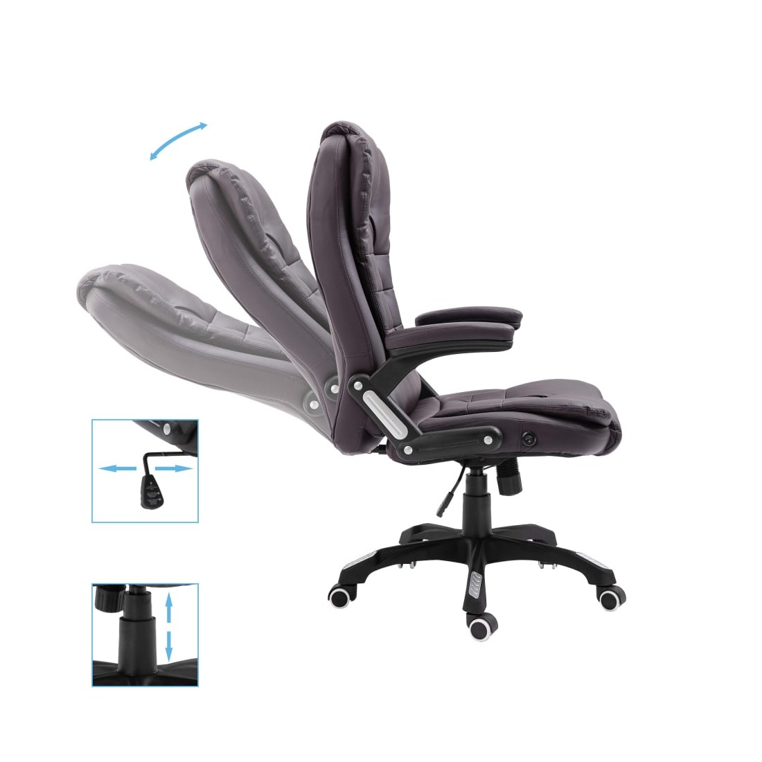 Notre chaise de bureau confortable a un design luxueux et ergonomique qui sera une excellente addition à tout bureau. Un design à dossier haut avec du dossier ergonomique rembourré, des accoudoirs et de la plaque de siège sous forme de papillon permettent des longues sessions de travail. La conception réglable en hauteur vous permet d’ajuster la hauteur de la chaise et d’obtenir du confort accru et un alignement sain de la colonne vertébrale. De plus, la conception pivotante sur 360 degrés assure un niveau de mouvement accru. 5 roulettes en nylon facilitent le roulement silencieux.