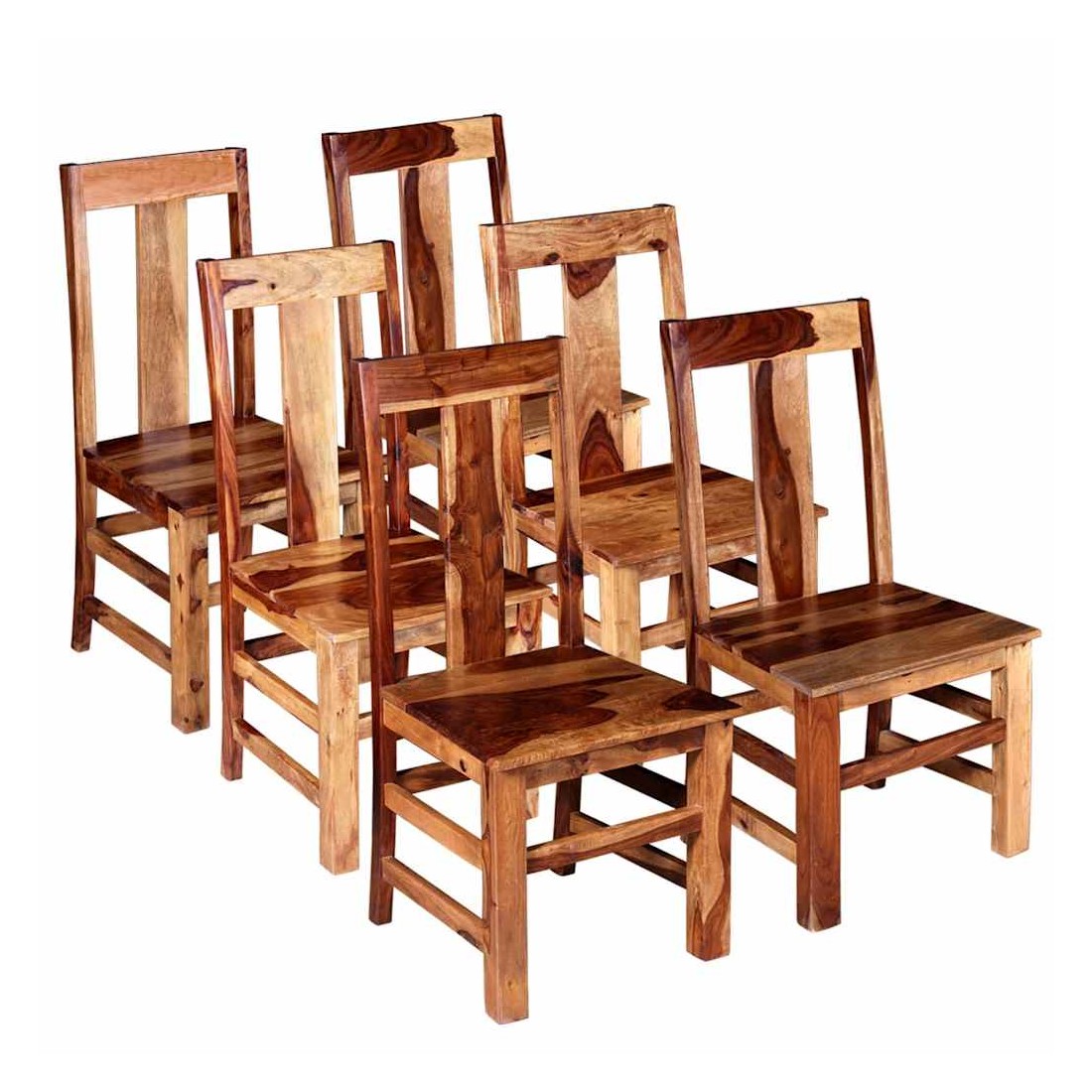 Cet ensemble de 6 chaises de salle à manger en bois au design intemporel apportera une touche de charme rustique à votre intérieur. Fabriquées en bois massif avec une finition mate miel, ces chaises sont durables et faciles à entretenir. Les beaux grains de bois rendent chacune de nos chaises unique et légèrement différente l'une de l'autre. Ces chaises en bois avec dossier haut sont idéales pour dîner en famille ou pour servir de sièges supplémentaires lorsque vous invitez des invités. Ces chaises en bois exsudent un aspect de campagne chaud qui fait appel à l'ambiance nostalgique. La livraison comprend 6 chaises. Remarque importante : les couleurs varient d'une pièce à l'autre, rendant chacune de nos chaises unique. La livraison est aléatoire, ce qui garantit l'exclusivité et l'individualité de votre produit.