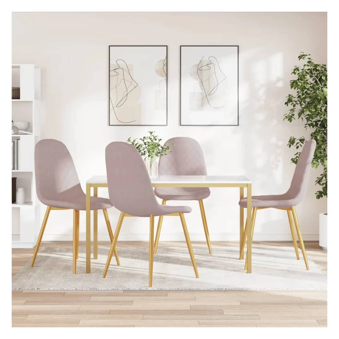 À la fois minimalistes et élégantes, ces chaises de salle à manger sont conçues pour se démarquer dans votre espace de vie. Les chaises de cuisine offrent à votre famille un endroit confortable pour dîner dans la salle à manger ou lire et vous reposer dans le salon. Grâce au siège et au dossier rembourrés en mousse épaisse, les chaises latérales vous apporteront sûrement un confort d'assise optimal. De plus, les pieds chromés dorés ajoutent à leur stabilité et à leur robustesse.