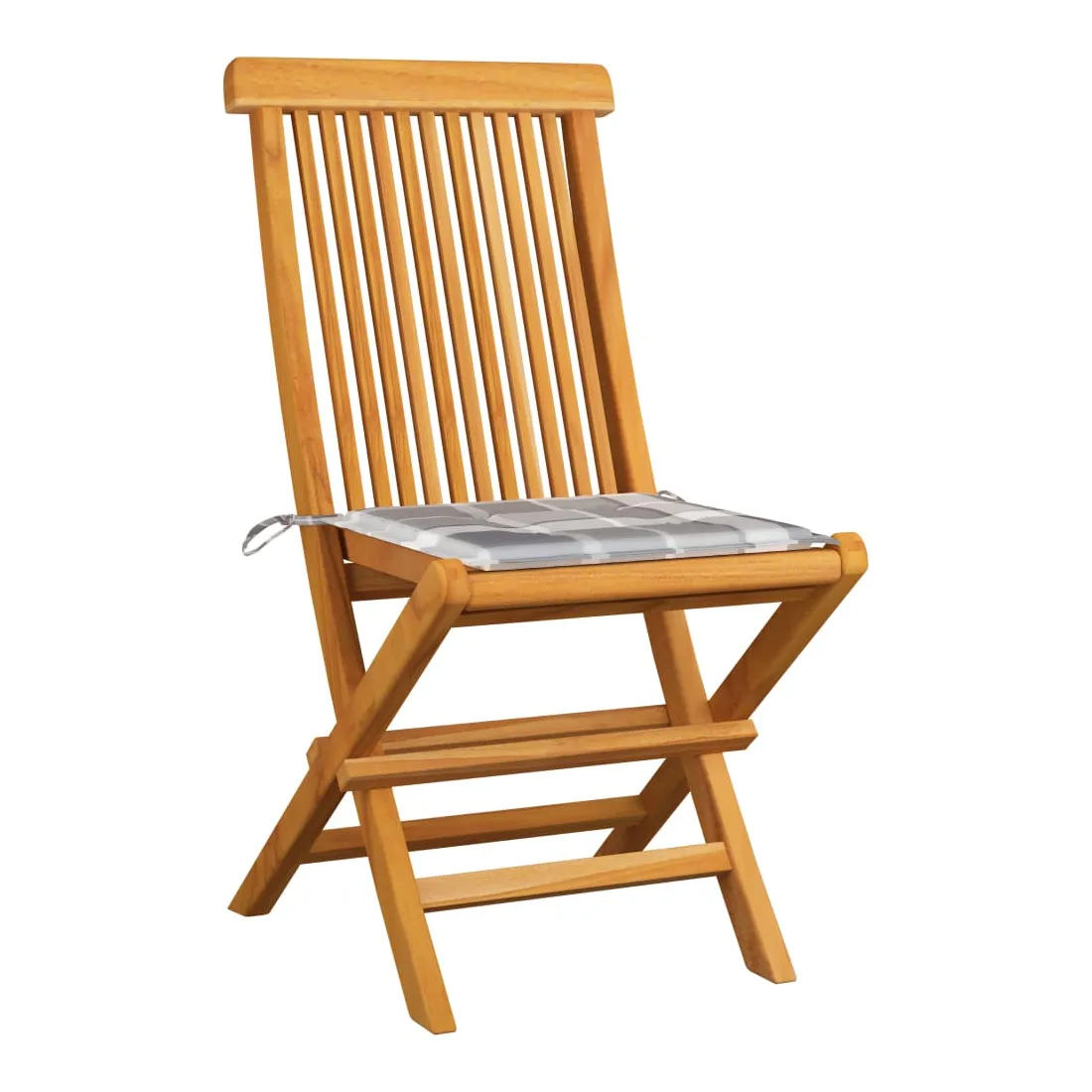 Chaises de jardin lot de 2 avec coussins à carreaux gris Teck