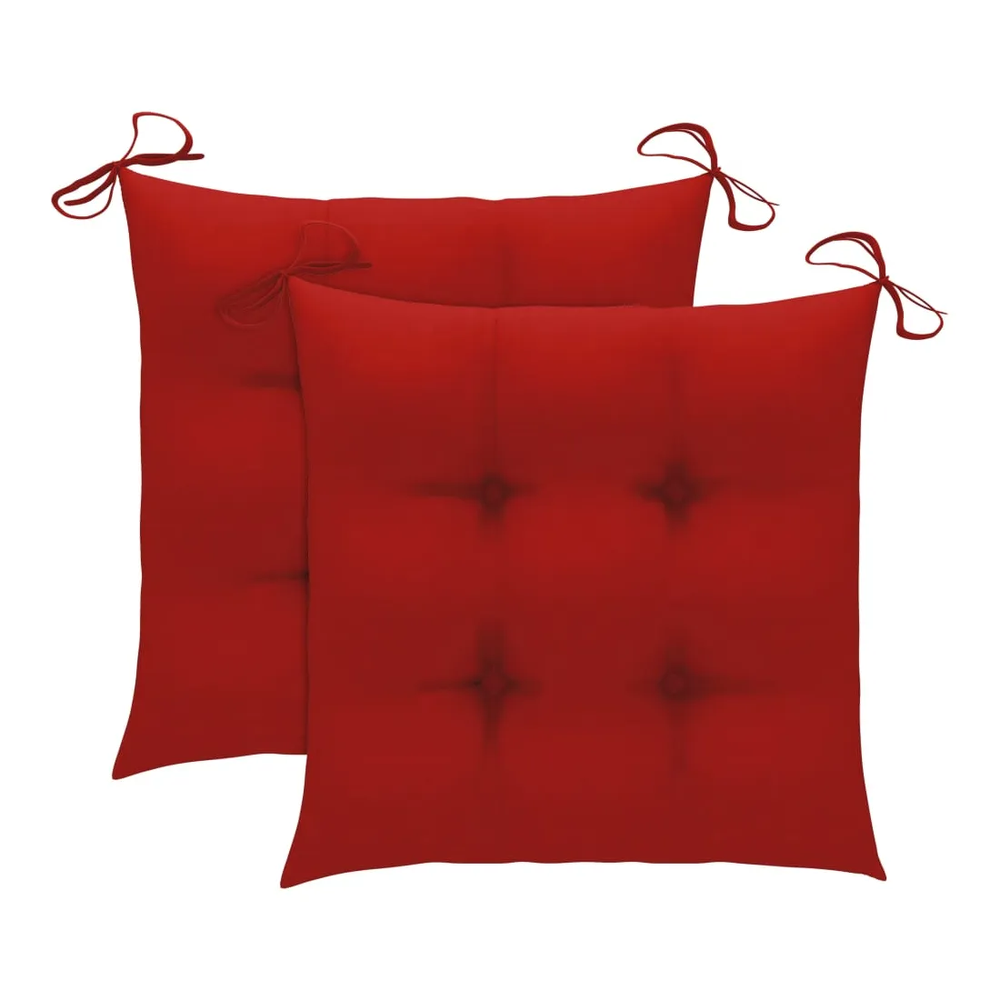 Chaises de jardin lot de 2 et coussins rouge Bois teck massif