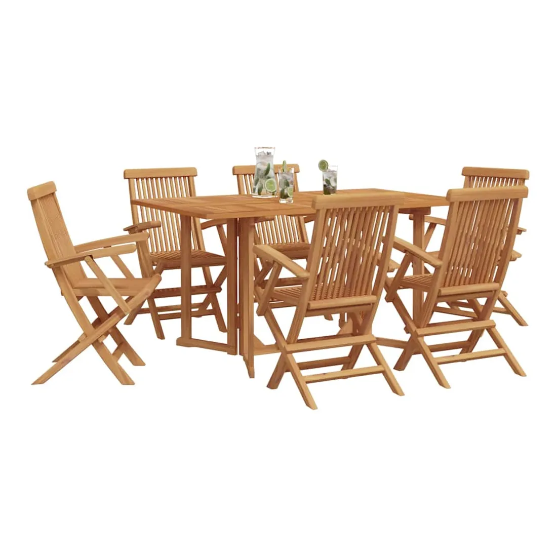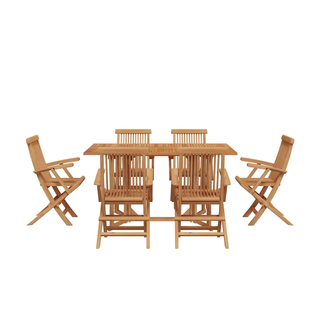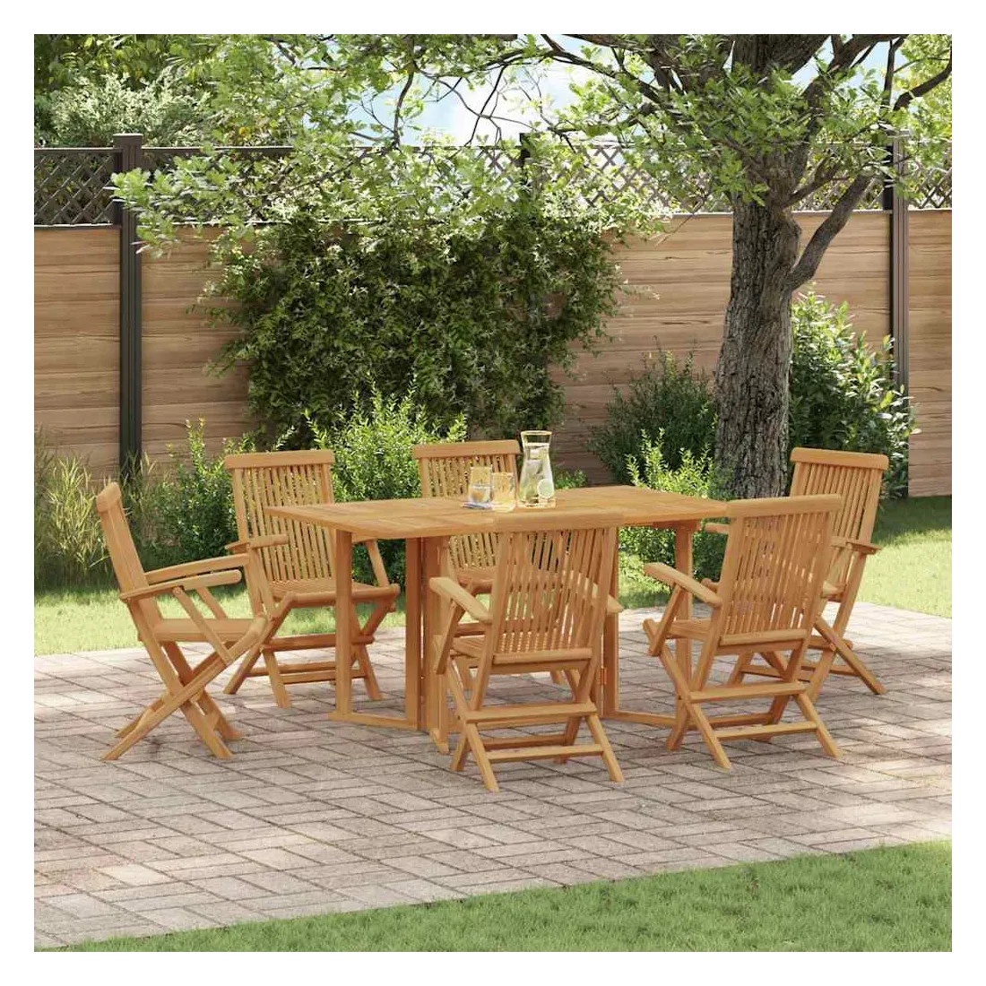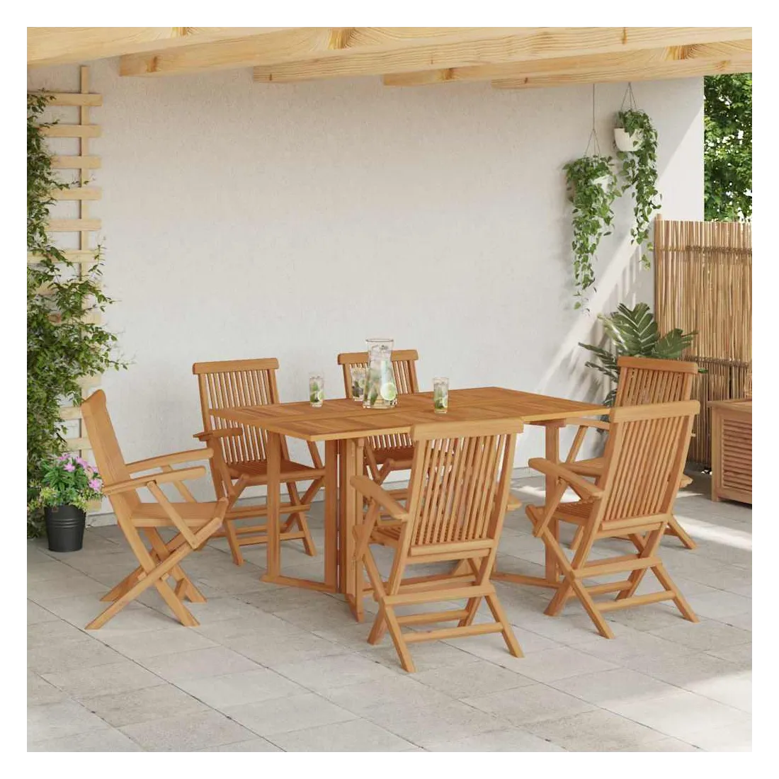 vidaXLCet ensemble de jardin moderne a du style avec ses lignes épurées et son design minimaliste. Idéal pour ceux qui aiment la simplicité et la fonctionnalité, il mesure 150 x 90 x 75 cm, pratique pour rassembler des amis ou de la famille sur des terrasses ou dans des jardins. Cela sublime l'esthétique de tout espace extérieur tout en créant une ambiance parfaite pour des repas en plein air. Du style et de la praticité, c'est un incontournable pour ceux qui recherchent le parfait combo. Construction en teck massif : Fabriqué entièrement en teck massif de qualité, cet ensemble est à la fois résistant et chic. Le teck est naturellement résistant aux intempéries, donc vous pouvez compter sur lui pour durer tout en ayant un look classique. Forme rectangulaire : Sa vaste table rectangulaire est idéale pour beaucoup de gens. Parfait pour les fêtes dans le jardin, elle crée une ambiance conviviale où les conversations peuvent s’enflammer, rendant chaque repas inoubliable. Design moderne : Cet ensemble joue sur des lignes claires sans trop de fioritures. Sa simplicité esthétique lui permet de s'intégrer facilement dans différents styles de décors, que ce soit dans une cour urbaine ou un jardin luxuriant. Composants fonctionnels : Les chaises, avec leur finition en teck massif, sont confortables et jolies. Les pieds solides et le siège en teck garantissent stabilité et soutien, avec un traitement à l'huile pour mettre en valeur les couleurs naturelles et garder l'humidité à distance. Entretien facile : Un petit coup de chiffon sec de temps en temps suffit pour garder cet ensemble en parfait état ! Les matériaux utilisés rendent l'entretien rapide, vous laissant plus de temps pour profiter de vos moments dehors.