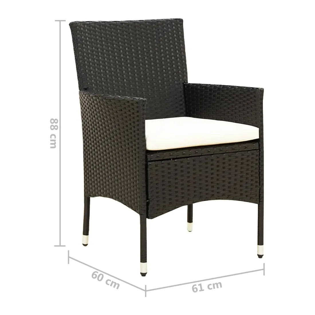 Dînez avec les membres de votre famille ou profitez simplement du temps dans votre espace extérieur avec cet ensemble de chaises de jardin. La chaise d’extérieur est fabriquée à partir d’un solide cadre en acier enduit de poudre, ce qui la rend robuste et stable pour des années de détente. Le fauteuil recouvert de résine tressée est facile à nettoyer avec un chiffon humide et convient à une utilisation quotidienne à l’extérieur. De plus, le coussin d'assise bien rembourré ajoute un confort supplémentaire à la chaise. Remarque : afin de prolonger la durée de vie de vos meubles d'extérieur, nous vous recommandons de les nettoyer régulièrement et de ne pas les laisser à l'extérieur sans protection inutilement.Nettoyage : Utiliser une solution savonneuse douce.Stockage : si possible, stockez dans un endroit frais et sec à l'intérieur. Si le produit est stocké à l'extérieur, protégez-le avec une housse imperméable. Essuyez et séchez l'excès d'eau ou de neige des surfaces planes après la pluie ou une chute de neige. Permettez une circulation d'air suffisante afin d'éviter les dommages liés à l'humidité.