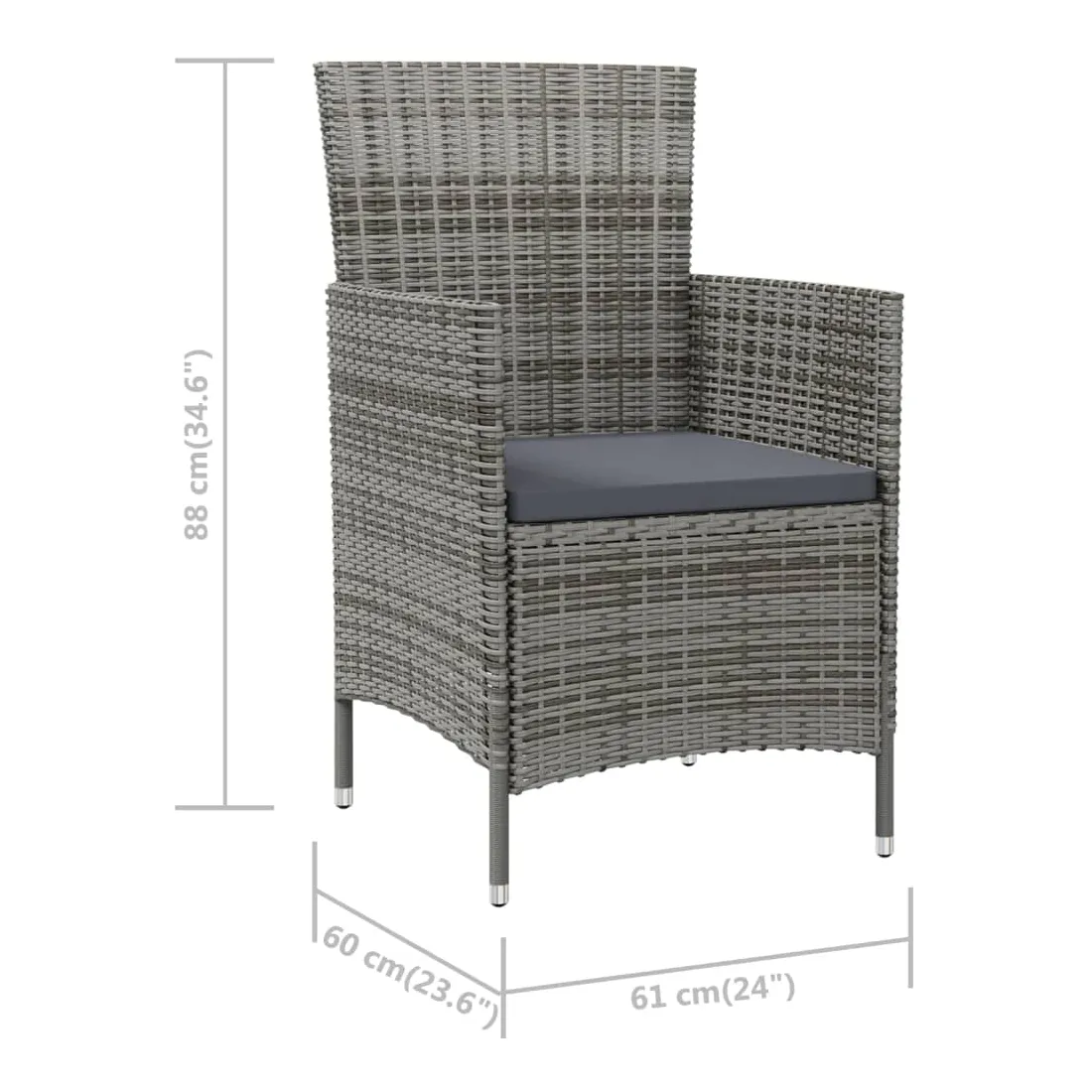 Dînez avec les membres de votre famille ou profitez simplement du temps dans votre espace extérieur avec cet ensemble de chaises de jardin. La chaise d’extérieur est fabriquée à partir d’un solide cadre en acier enduit de poudre, ce qui la rend robuste et stable pour des années de détente. Le fauteuil recouvert de résine tressée est facile à nettoyer avec un chiffon humide et convient à une utilisation quotidienne à l’extérieur. De plus, le coussin d'assise bien rembourré ajoute un confort supplémentaire à la chaise. Remarque : afin de prolonger la durée de vie de vos meubles d'extérieur, nous vous recommandons de les nettoyer régulièrement et de ne pas les laisser à l'extérieur sans protection inutilement.Nettoyage : Utiliser une solution savonneuse douce.Stockage : si possible, stockez dans un endroit frais et sec à l'intérieur. Si le produit est stocké à l'extérieur, protégez-le avec une housse imperméable. Essuyez et séchez l'excès d'eau ou de neige des surfaces planes après la pluie ou une chute de neige. Permettez une circulation d'air suffisante afin d'éviter les dommages liés à l'humidité.
