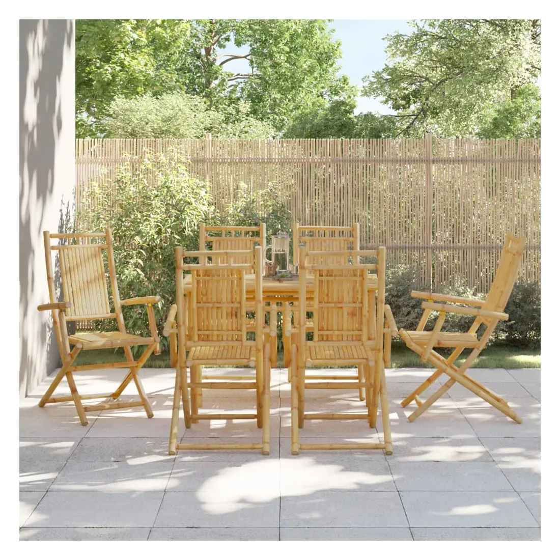 Ces chaises pliables de jardin en bambou ont un design élégant et seront un excellent choix pour dîner en plein air dans le jardin ou sur le patio. Durable et durable : en tant que matériau naturel, le bambou offre une bonne respirabilité et une faible odeur. Ces qualités rendent la chaise pliable en bambou résistant à l’eau et durable.Design pliable : la chaise à manger peut être facilement pliée lorsqu'elle n'est pas utilisée, pour un rangement et un transport faciles.Une expérience d'assise confortable : dotée d'accoudoirs et d'un dossier, la chaise d'extérieur vous offre un confort optimal. Bon à savoir :Pour que vos meubles d'extérieur restent beaux, nous vous recommandons de les protéger avec une housse imperméable.