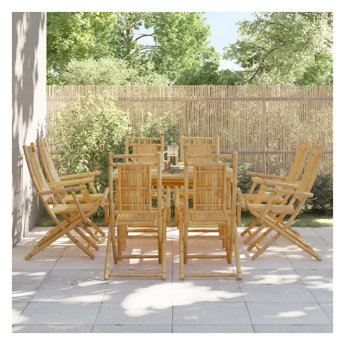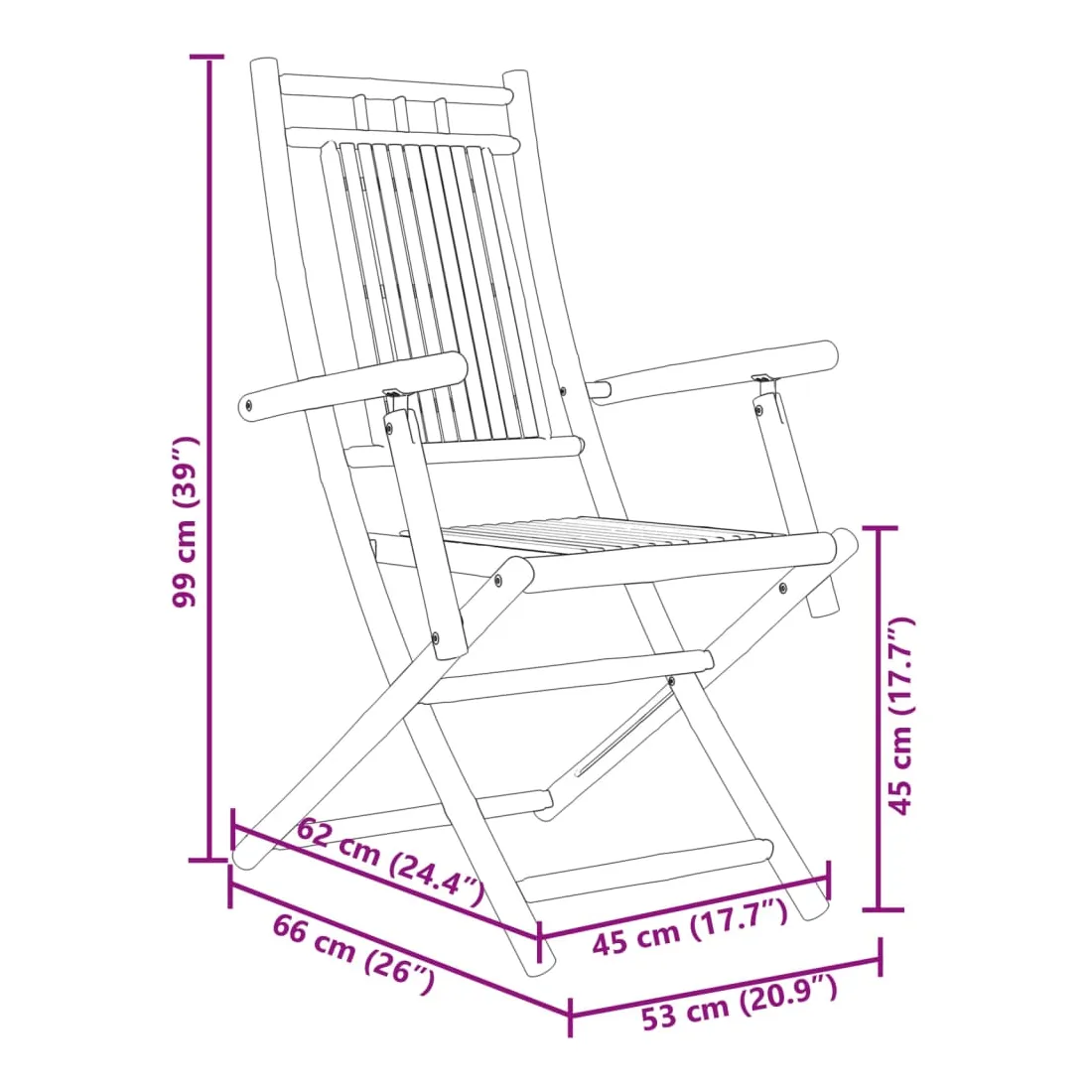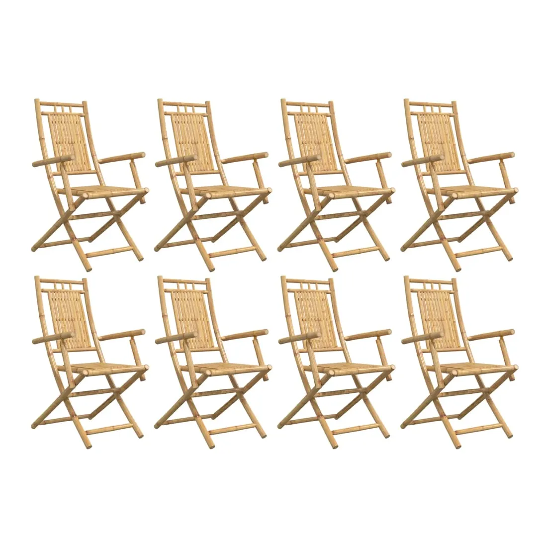 Ces chaises pliables de jardin en bambou ont un design élégant et seront un excellent choix pour dîner en plein air dans le jardin ou sur le patio. Durable et durable : en tant que matériau naturel, le bambou offre une bonne respirabilité et une faible odeur. Ces qualités rendent la chaise pliable en bambou résistant à l’eau et durable.Design pliable : la chaise à manger peut être facilement pliée lorsqu'elle n'est pas utilisée, pour un rangement et un transport faciles.Une expérience d'assise confortable : dotée d'accoudoirs et d'un dossier, la chaise d'extérieur vous offre un confort optimal. Bon à savoir :Pour que vos meubles d'extérieur restent beaux, nous vous recommandons de les protéger avec une housse imperméable.