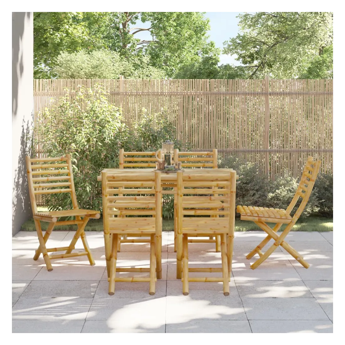 Ces chaises pliables de jardin en bambou ont un design élégant et seront un excellent choix pour dîner en plein air dans le jardin ou sur le patio. Durable et durable : en tant que matériau naturel, le bambou offre une bonne respirabilité et une faible odeur. Ces qualités rendent la chaise pliable en bambou résistant à l’eau et durable.Design pliable : la chaise à manger peut être facilement pliée lorsqu'elle n'est pas utilisée, pour un rangement et un transport faciles.Une expérience d'assise confortable : dotée d'un dossier, la chaise d'extérieur vous offre un confort optimal. Bon à savoir :Pour que vos meubles d'extérieur restent beaux, nous vous recommandons de les protéger avec une housse imperméable.