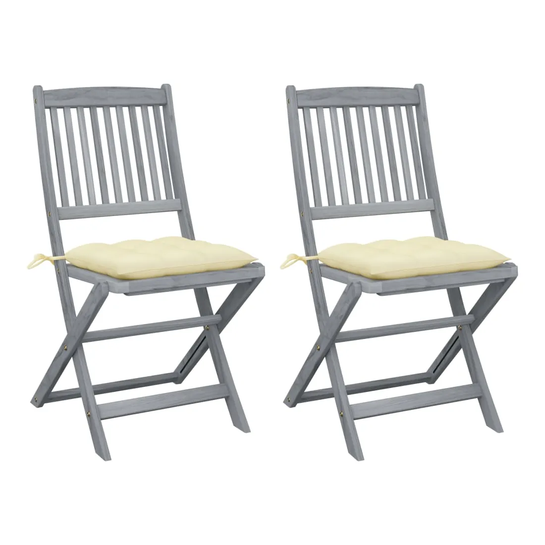 Chaises pliables d'extérieur lot de 2 et coussins Bois d'acacia