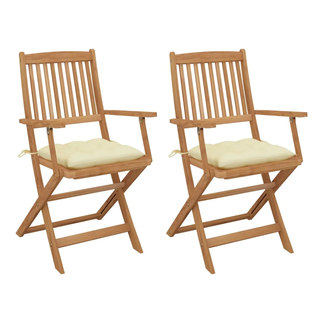 Chaises pliables de jardin lot de 2 avec coussins Bois d'acacia