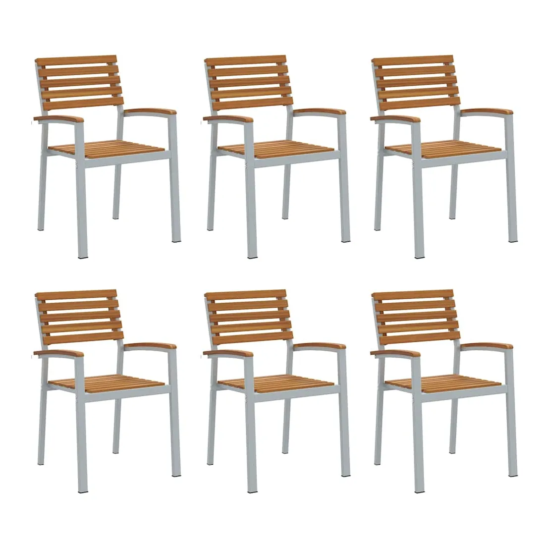 Cette chaise de jardin empilable allie style moderne et praticité, parfaite pour tous les espaces extérieurs comme patios et terrasses. Avec son design rectangulaire et minimaliste, elle embellit vos extérieurs, idéale pour des soirées jardin ou des moments tranquilles. Son bois naturel combiné avec un cadre en acier solide apporte un style contemporain en garantissant confort et durabilité. Matériaux : Fait en bois d'acacia massif, cette chaise mixe texture bois naturel et robustesse pour un extérieur durable. Le matériau donne une classe tout en assurant résistance face aux éléments, alliant beauté et praticité sur le long terme. Composants inclus : Avec des accoudoirs plats en bois d'acacia, la chaise assure à la fois confort et un look cohérent. Les pieds en acier offrent un super support, même sur des terrains de jardin un peu irréguliers. Caractéristiques / Fonction / Design : Grâce à son design empilable, elle est idéale pour gagner de la place dans les extérieurs serrés. Ça vous permet de la ranger facilement et de la transporter sans tracas. Utilisations recommandées : Super pour les jardins, terrasses ou patios, cette chaise est top pour des moments entre amis ou pour se détendre seul. Sa construction légère mais robuste s'adapte à plein d'environnements, parfait pour toutes vos activités en extérieur. Entretien : Un nettoyage facile suffit ; un coup de chiffon sec et c'est tout. Pensez à la ranger à l'intérieur quand le temps n'est pas clément pour garder sa belle finition, assurant sa longévité et de bons moments à l'extérieur.