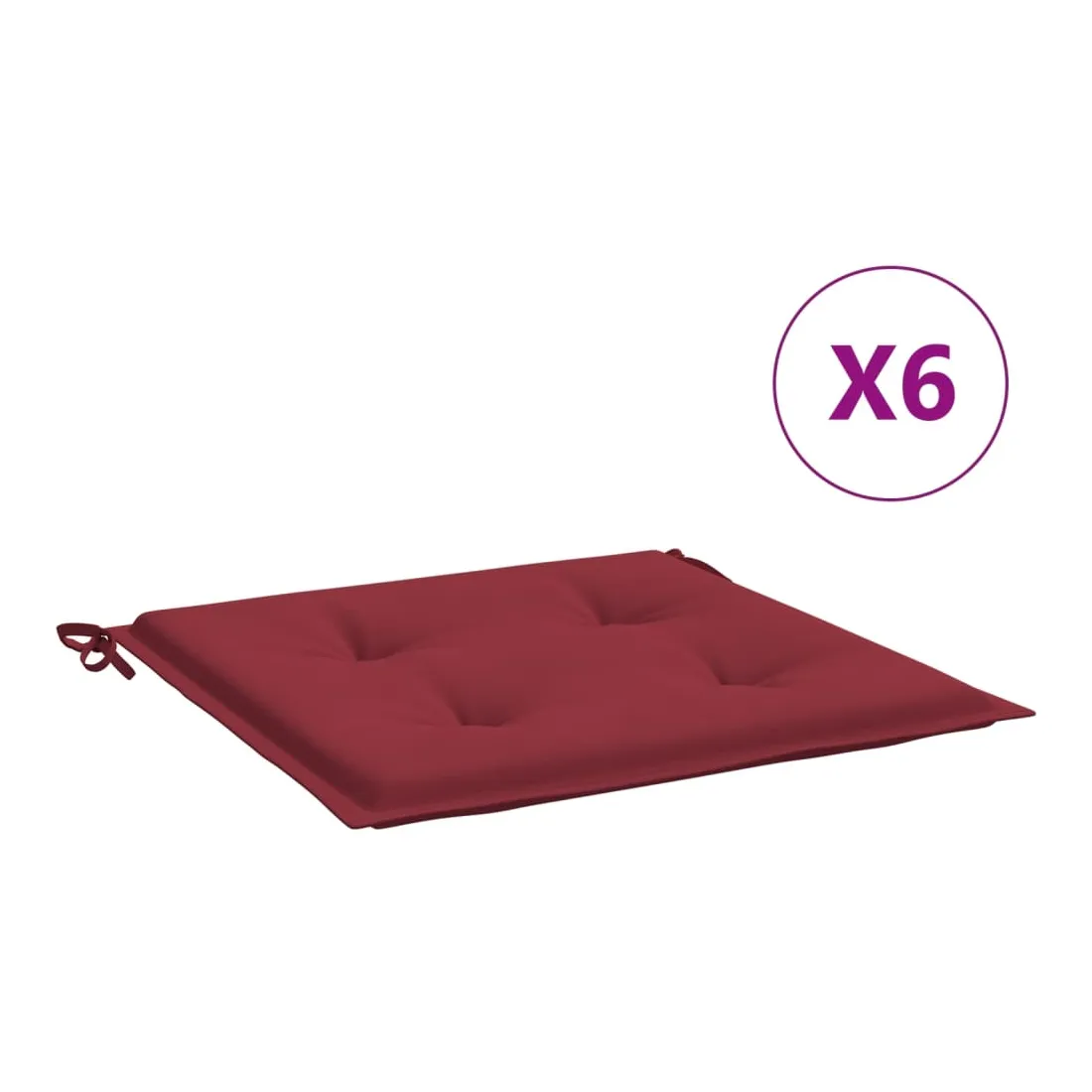 Coussins de chaise de jardin lot de 6 rouge bordeaux 50x50x4 cm