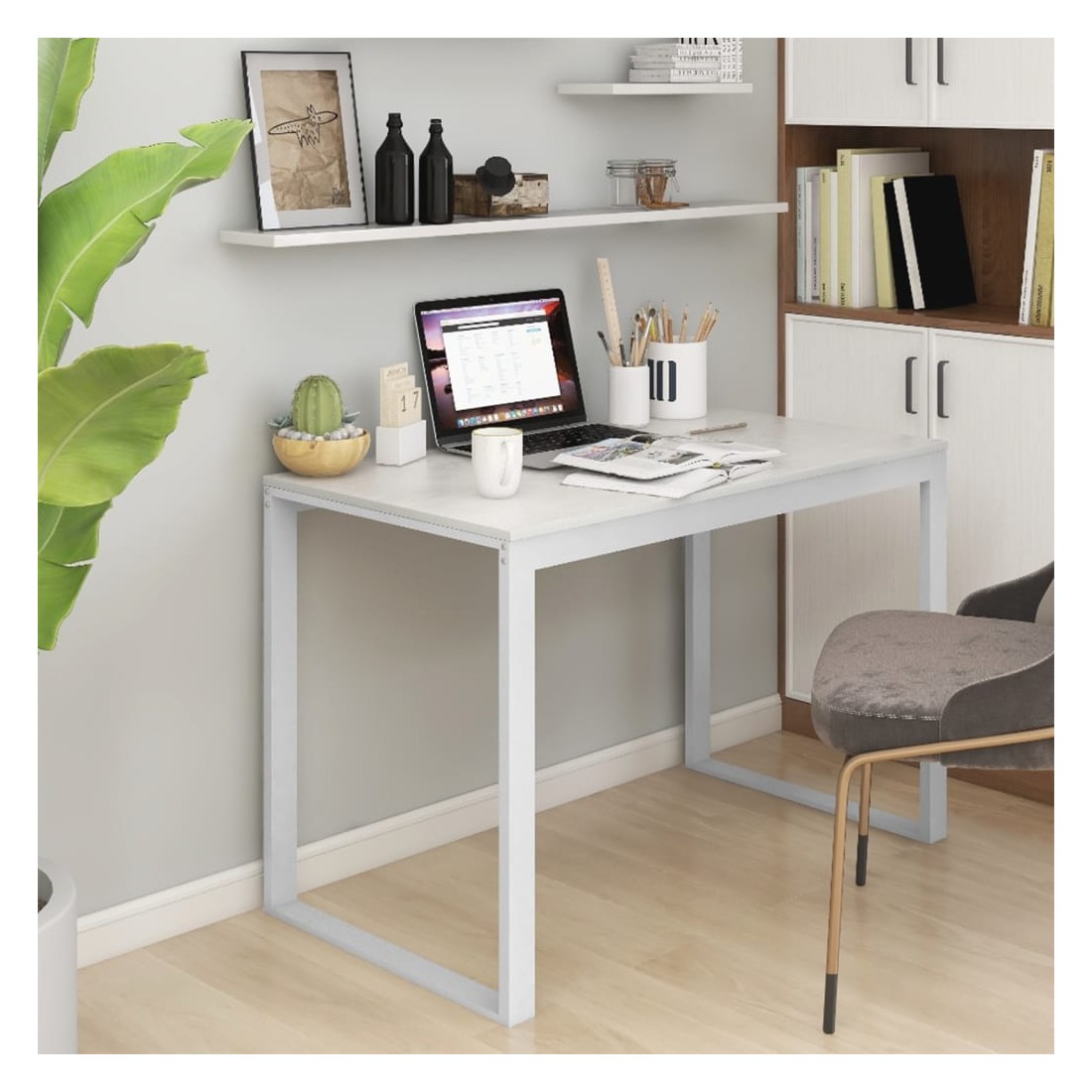 Comme tous les meilleurs designs, ce bureau d'ordinateur simple mais élégant est propre, compact et sûr. Il offre un grand espace de travail, ce qui en fait un meuble très pratique et polyvalent à utiliser à la maison ou au bureau. Fabriqué en métal enduit de poudre et en aggloméré, le bureau est extrêmement stable, solide et durable. De plus, le cadre en métal confère au bureau un style industriel, apportant une touche de charme unique à votre intérieur. Améliorez votre intérieur avec ce bureau moderne !