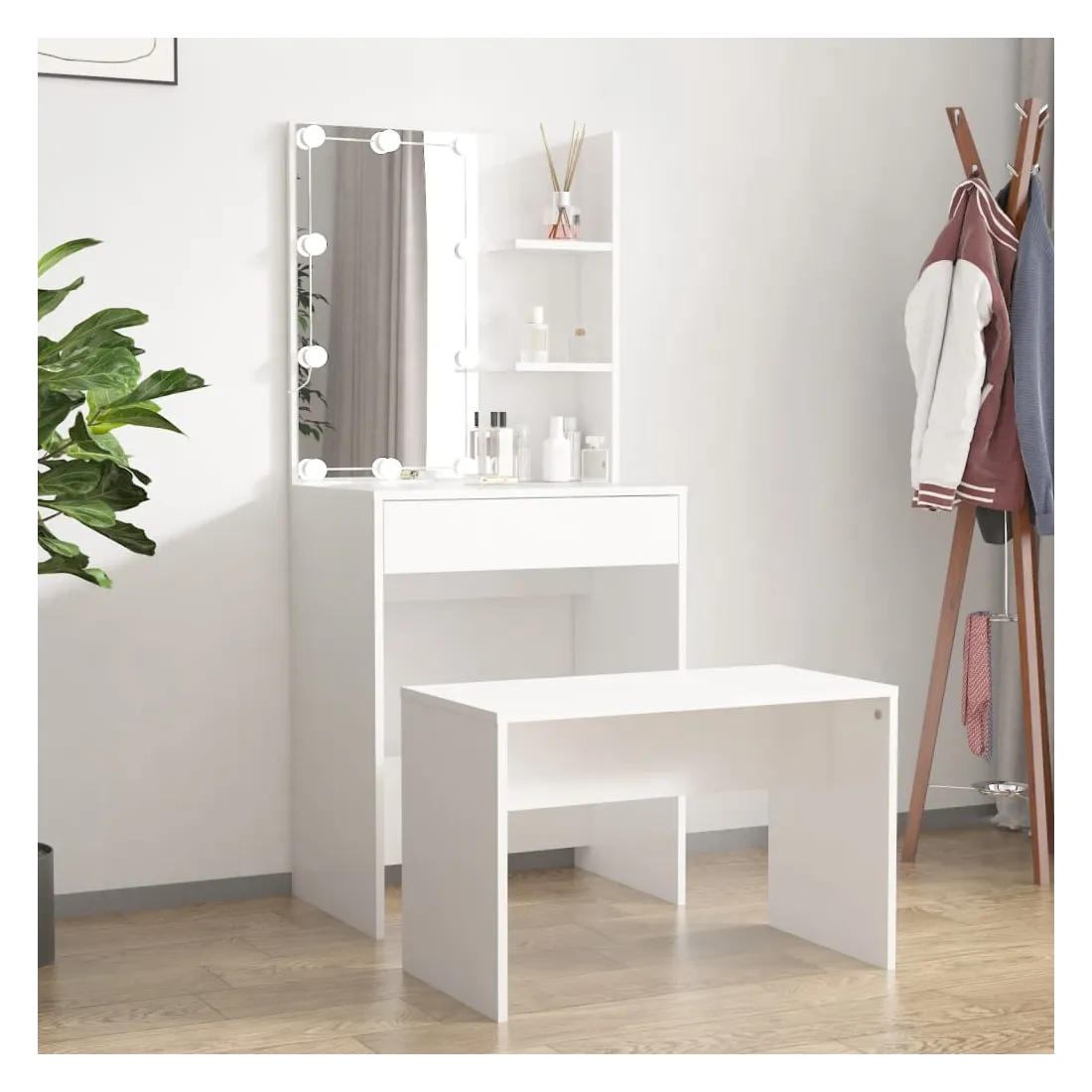 Ensemble de coiffeuse avec LED Blanc Bois d'ingénierie